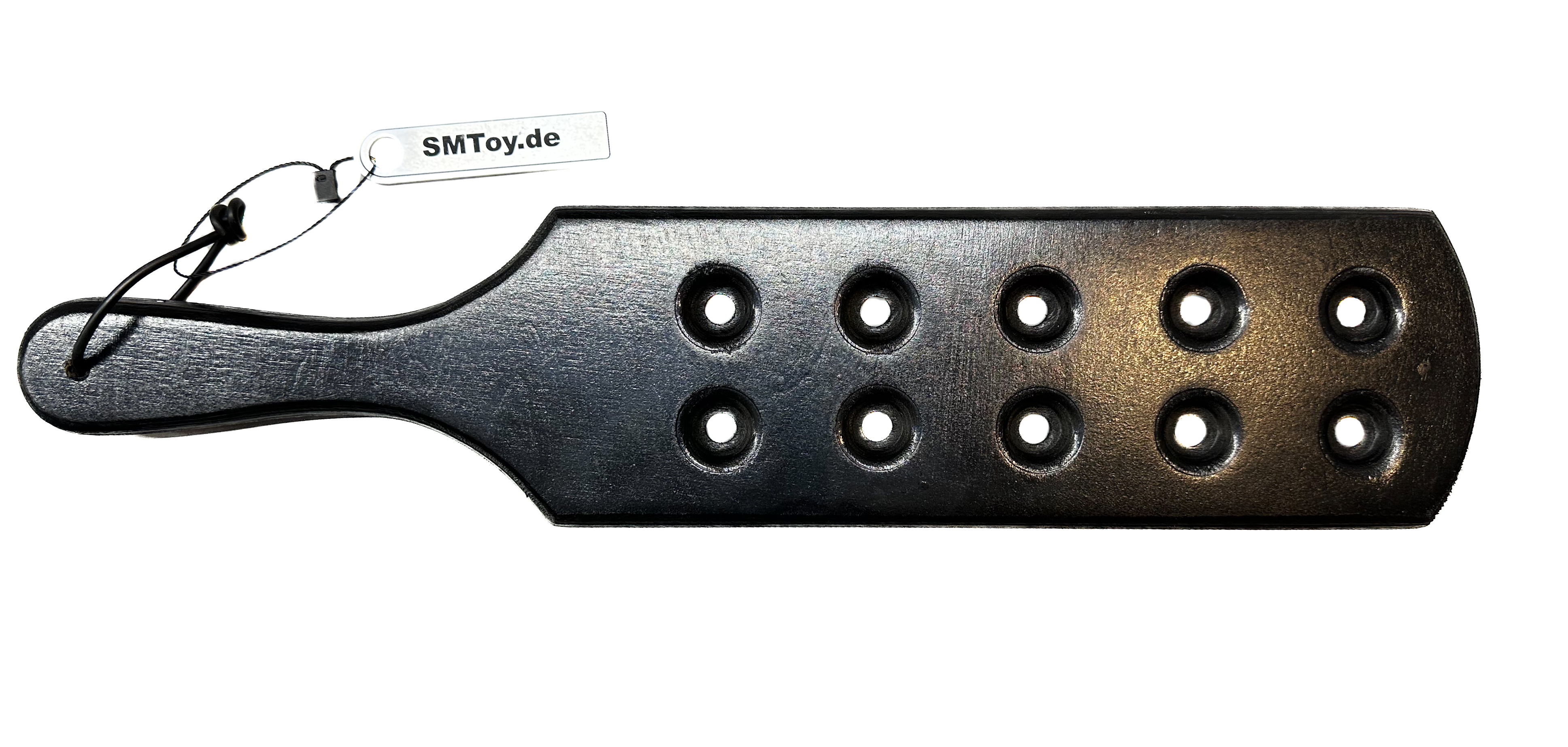 Paddle aus schwarz lackiertem, leicht angerautem Holz (Multiplex)