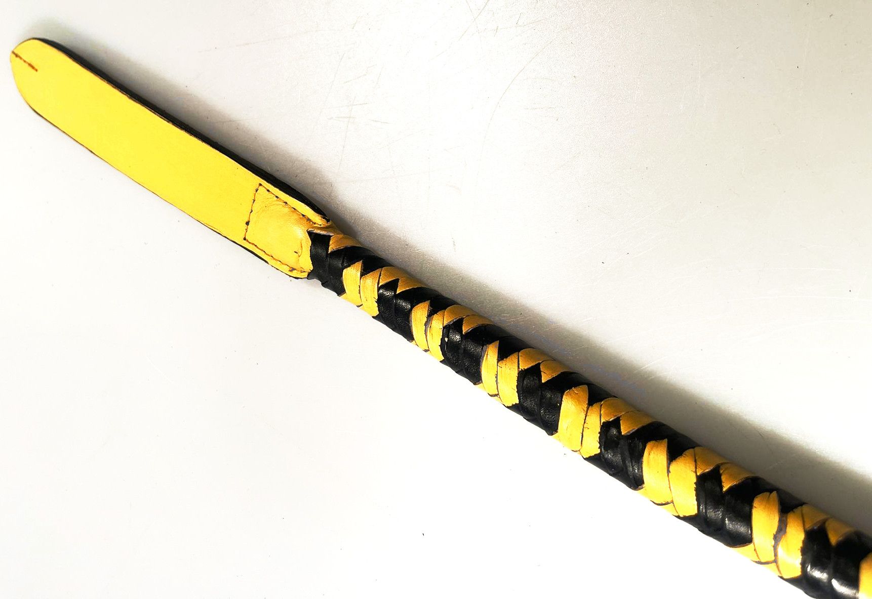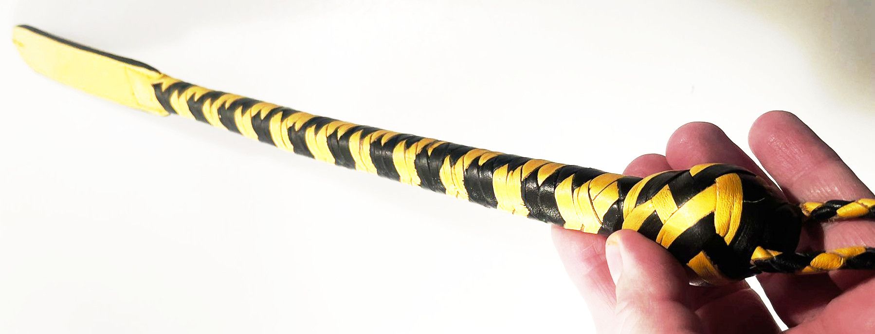 Lederpeitsche mit Karabiner Schwarz/Gelb