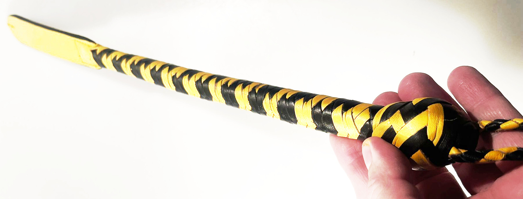 Kurzer Kantschu - Hochwertige Lederpeitsche mit Klatsche 36cm Black-Yellow
