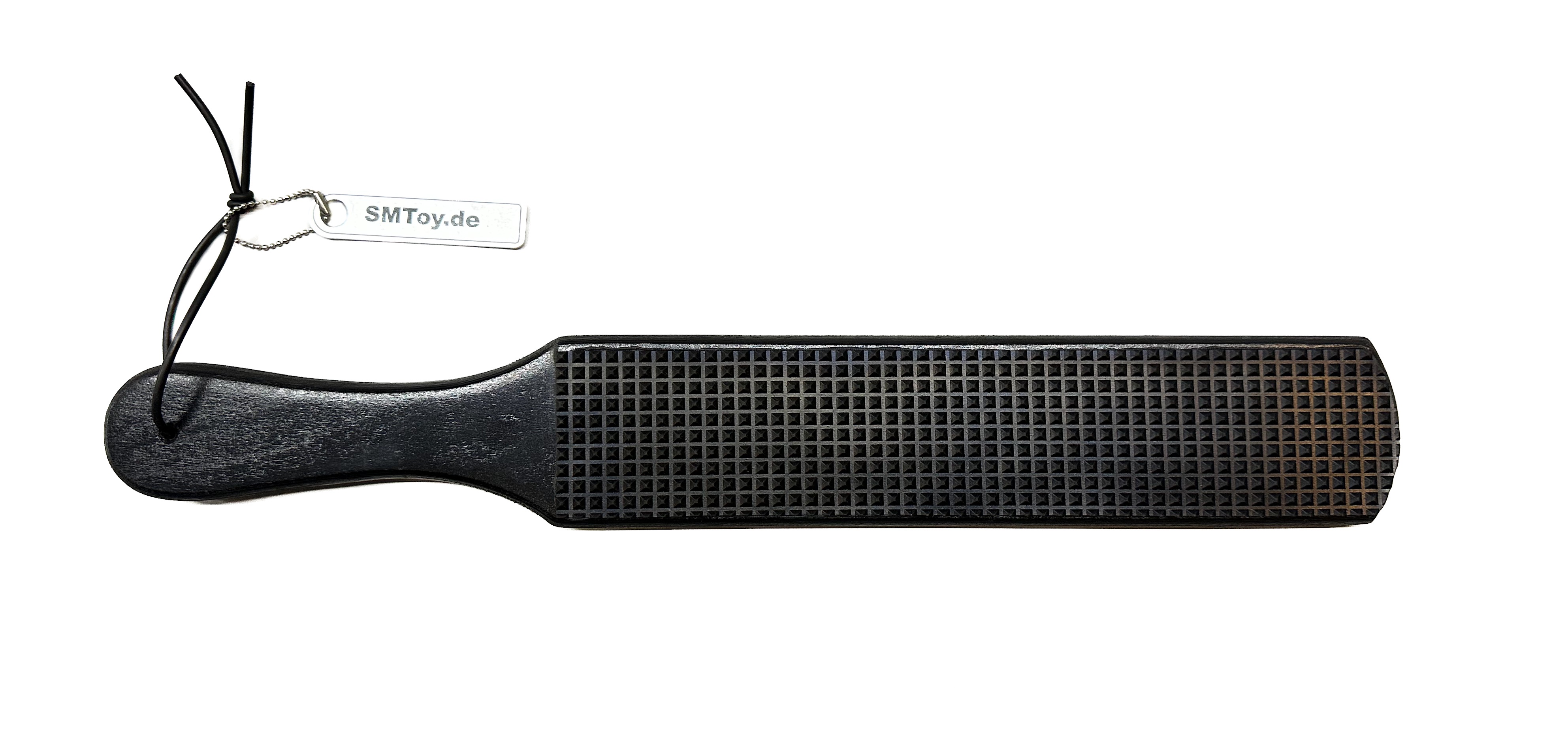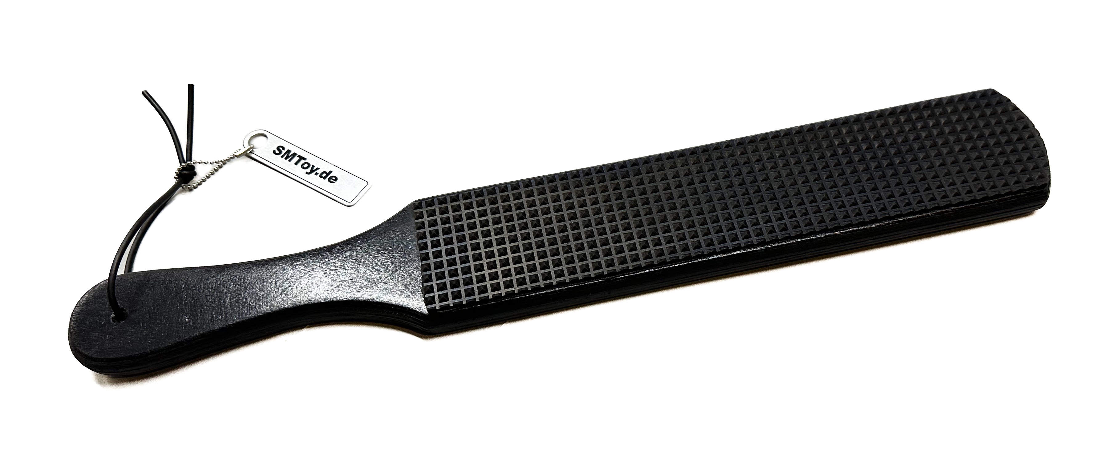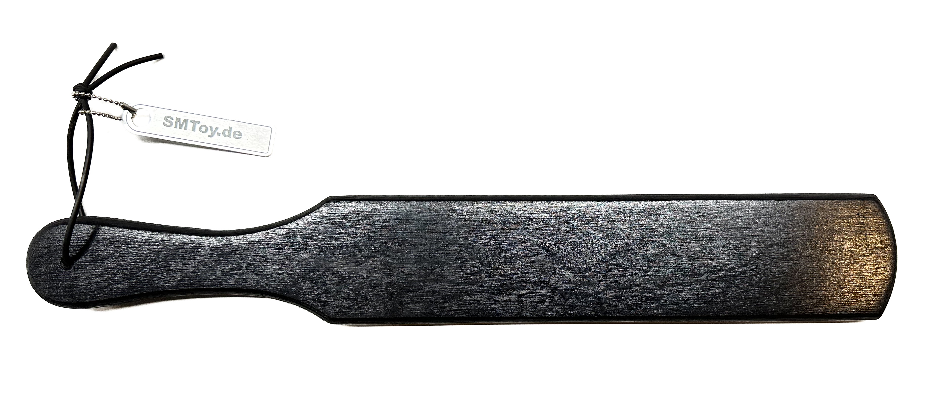 Paddle aus schwarz lackiertem, leicht angerautem Holz (Multiplex)