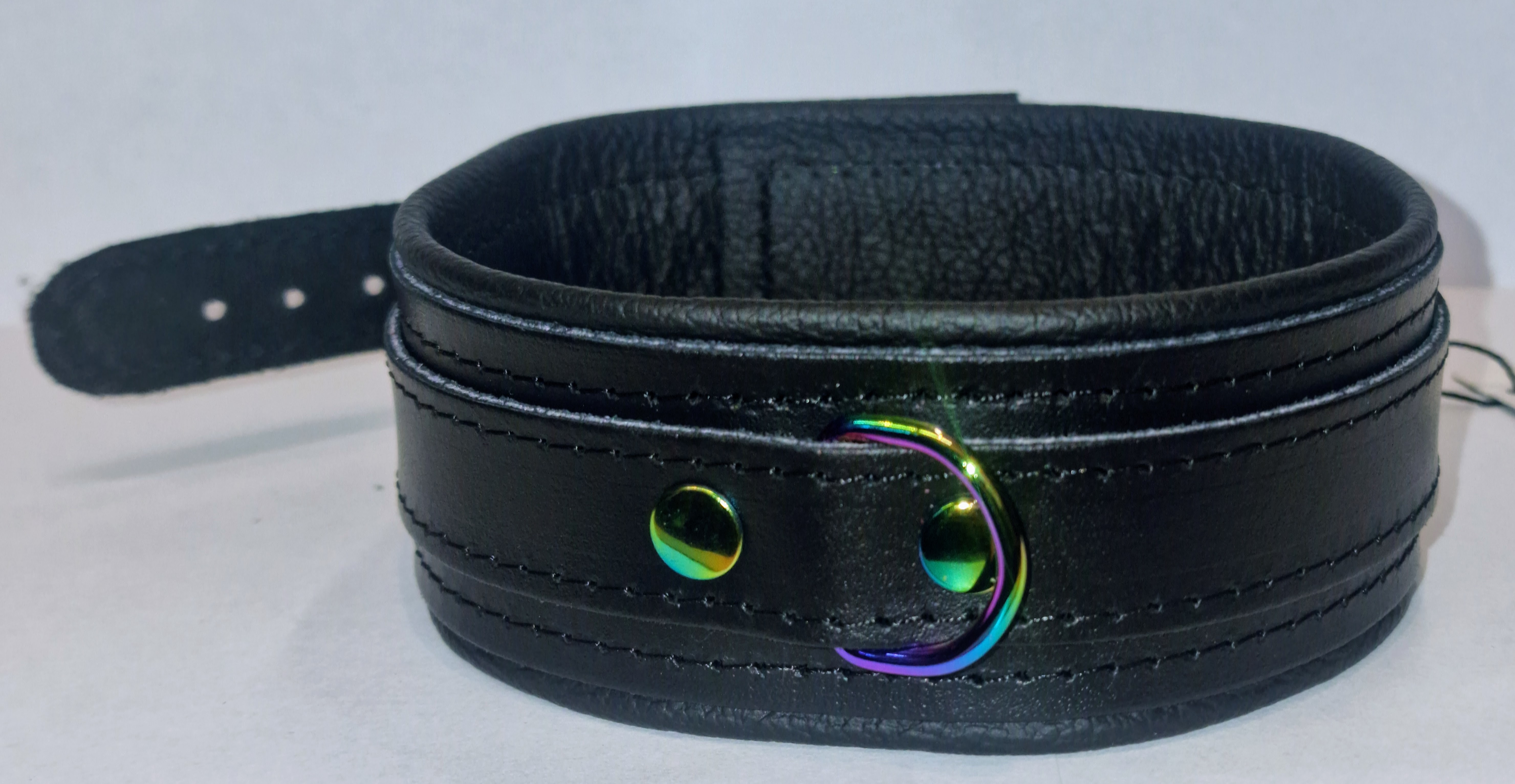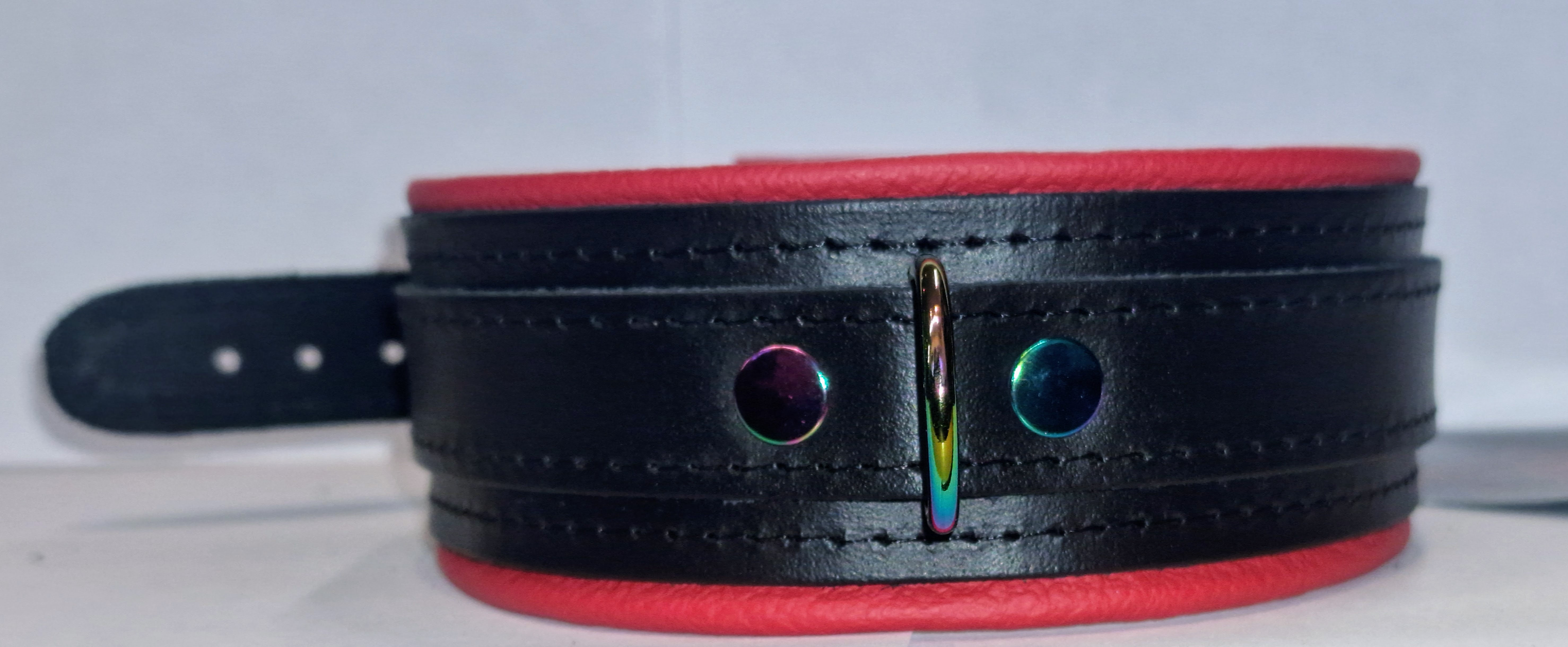 High-Quality Halsfessel – Regenbogen/Holo-Metallelemente