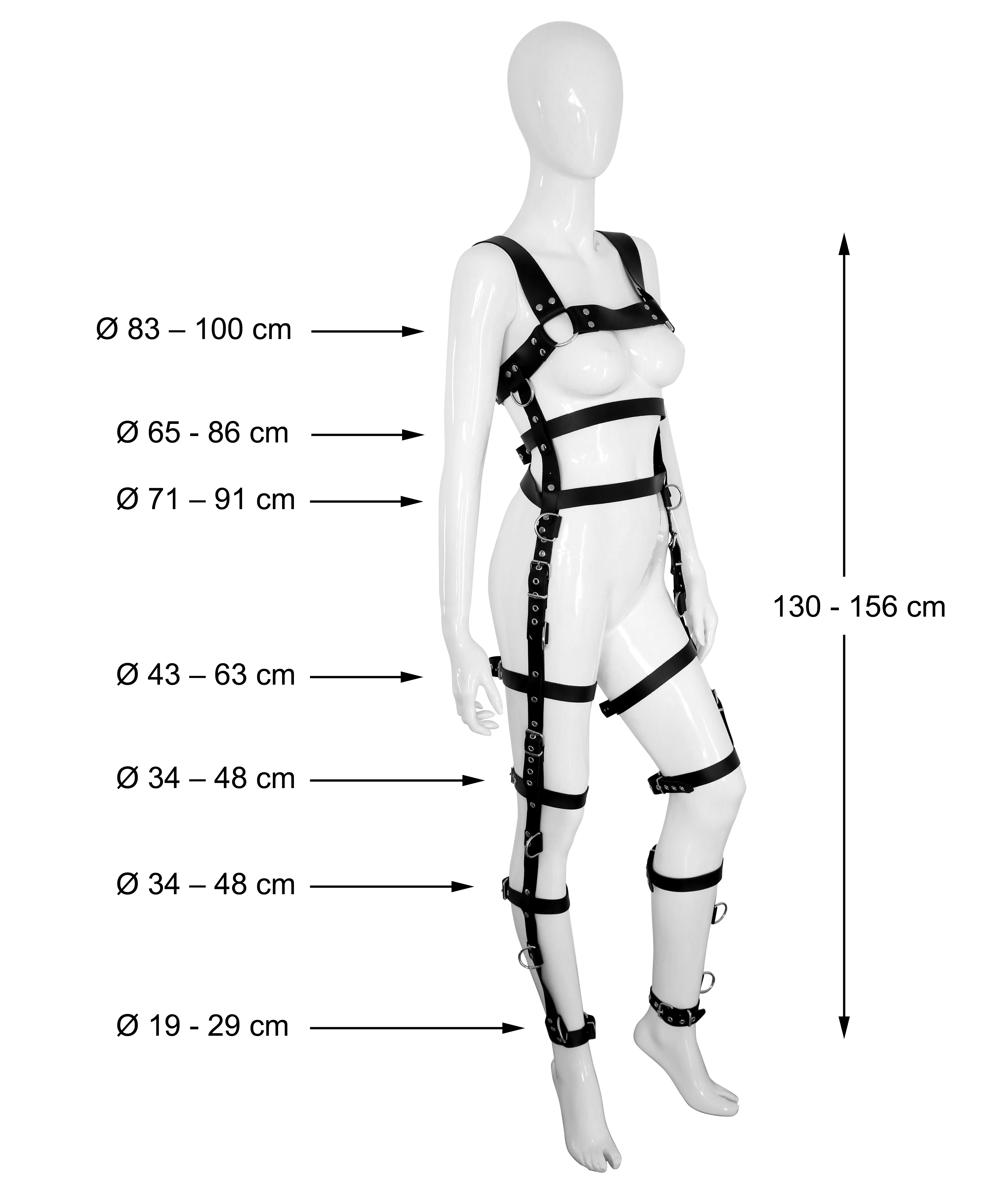 Alle Riemen sind im Umfang und in der Höhe mehrfach verstellbar und können entsprechend sich optimal der Körperform anpassen