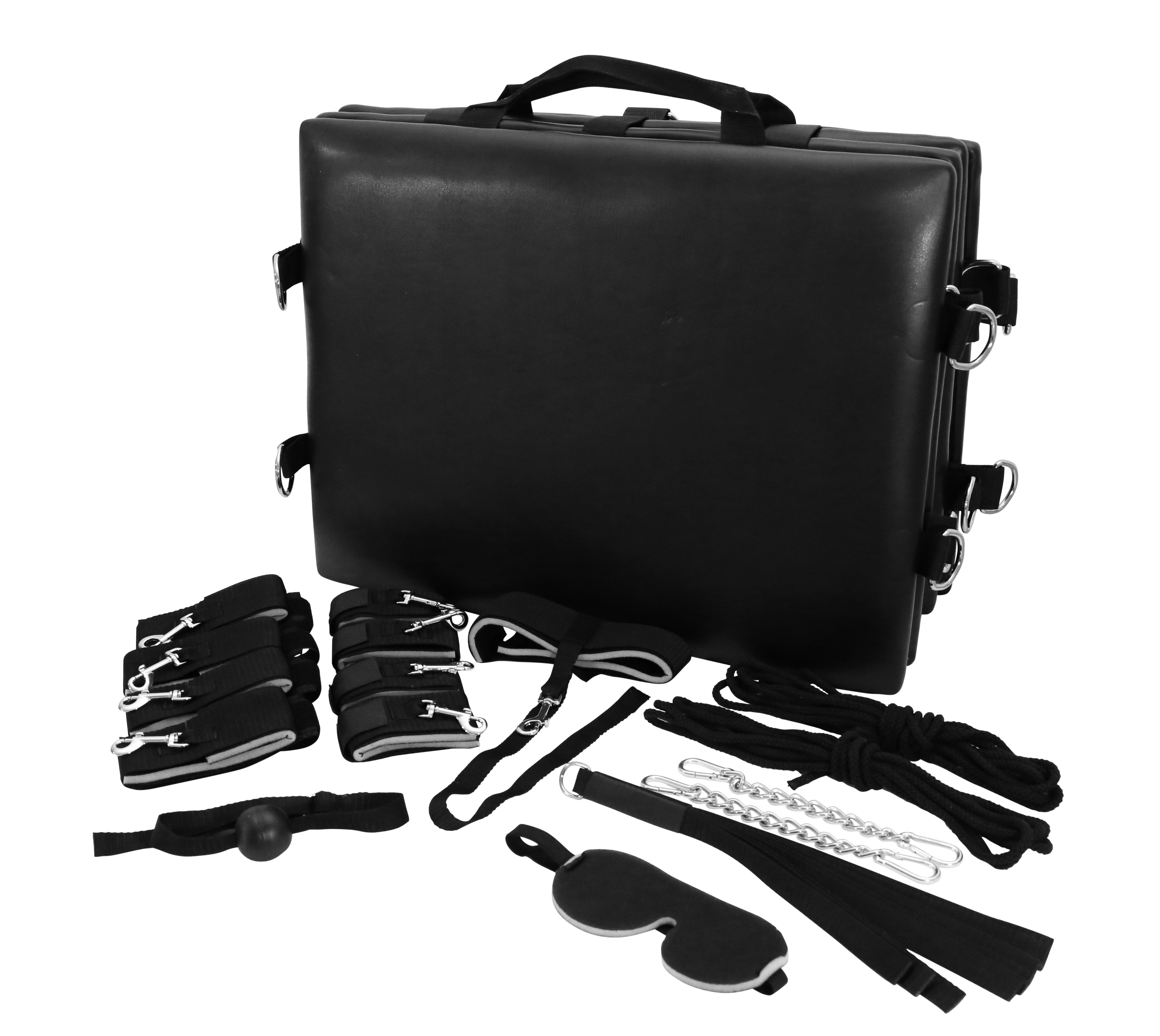 Zusammengeklappt kann der Lounger mittels Tragegriffen bequem transportiert werden (Inkl. Bondage Zubehör)