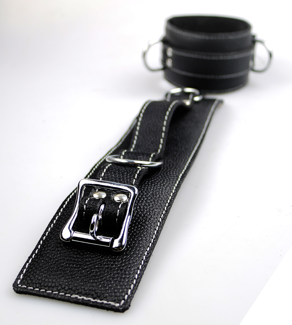 Leder Halsfessel schwarz mit großen D-Ringen L-XL