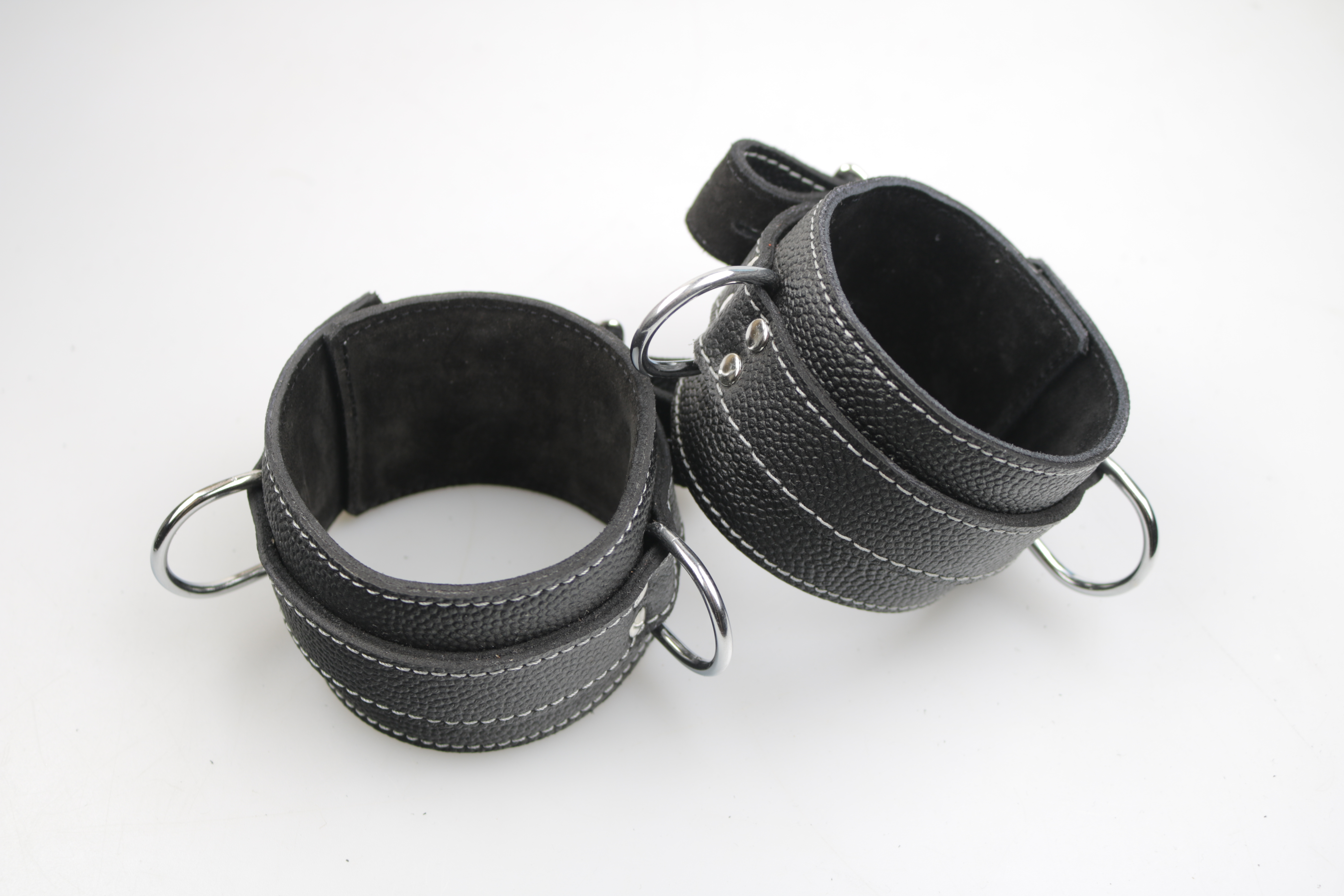 LEDER FESSELNDES - Abschließbare Handfesseln aus Edelstahl Leder
