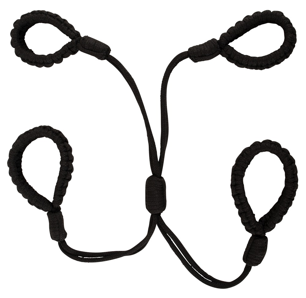 Das Cuff Set Rope von Bad Kitty besteht aus einem Fesselkreuz mit Hand- und Fußschlaufen. Die Fessel ist aus weichen gedrehten Baumwollseilen gefertigt und mit ihren stufenlos verschiebbaren Knoten schnell angelegt und bequem auf den passenden Umfang der Hand- und Fußgelenke eingestellt – perfekt für Bondage-Einsteiger!