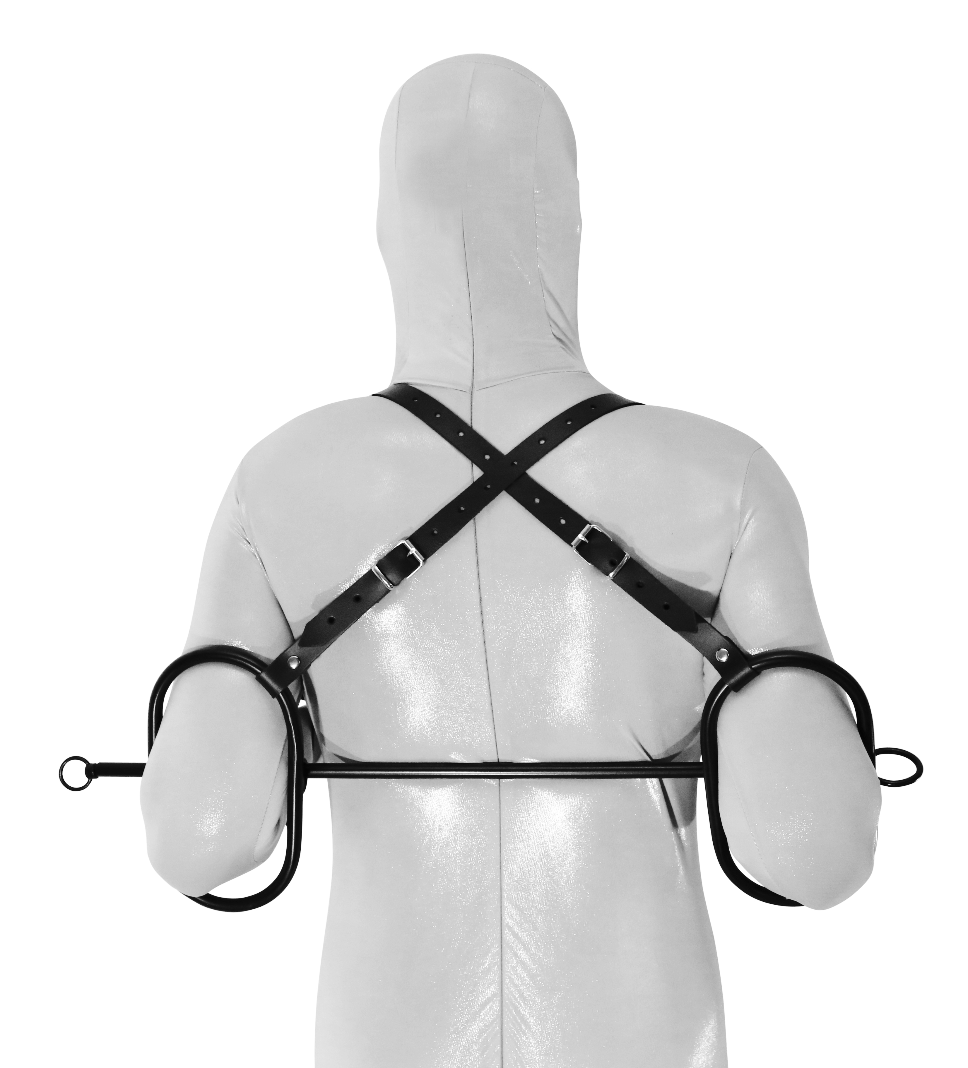 Durch die Querstange (Länge ca. 66 cm) und den Leder Gurten kann die Person so fixiert werden,