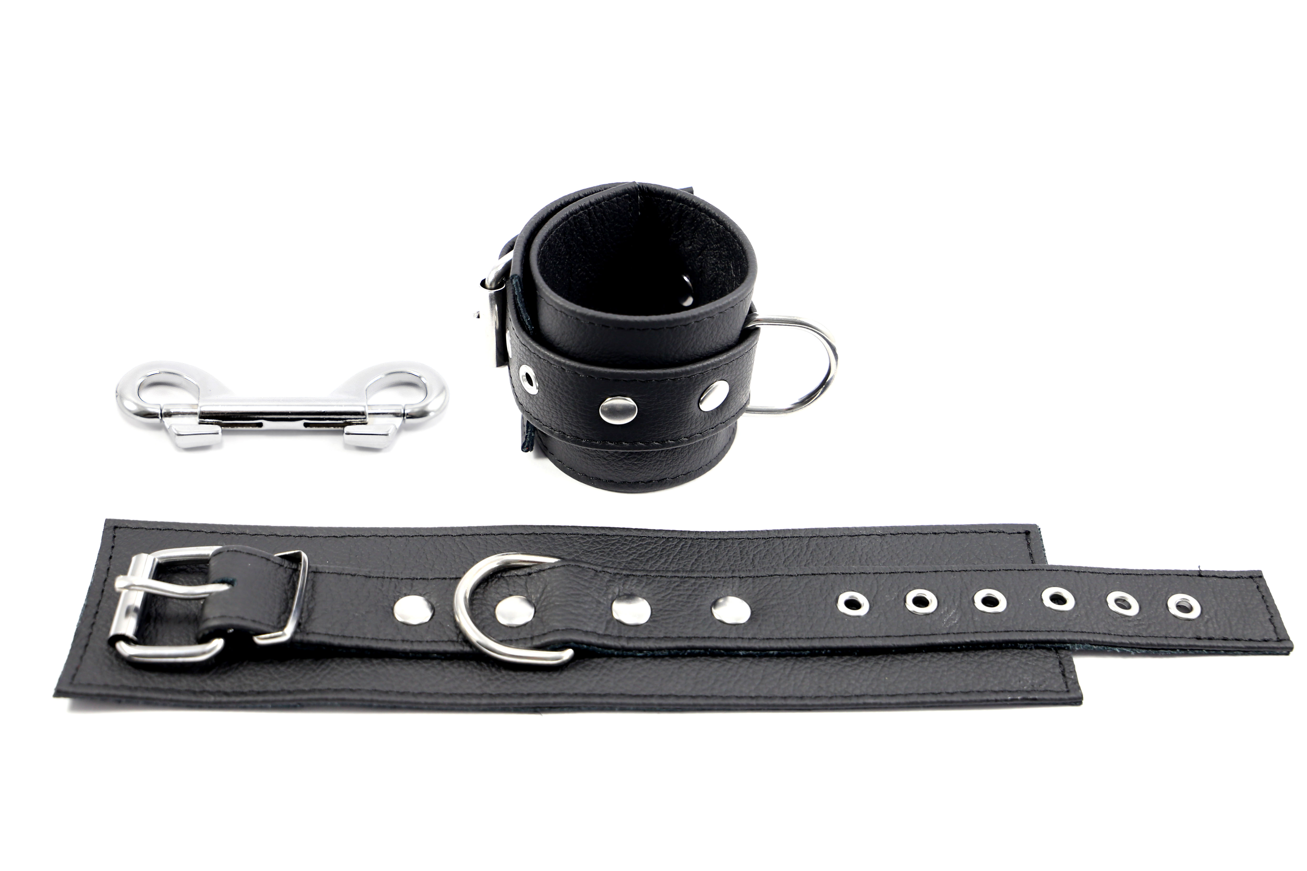 Leder Fesselset Schwarz mit dicker Kette und Karabinern