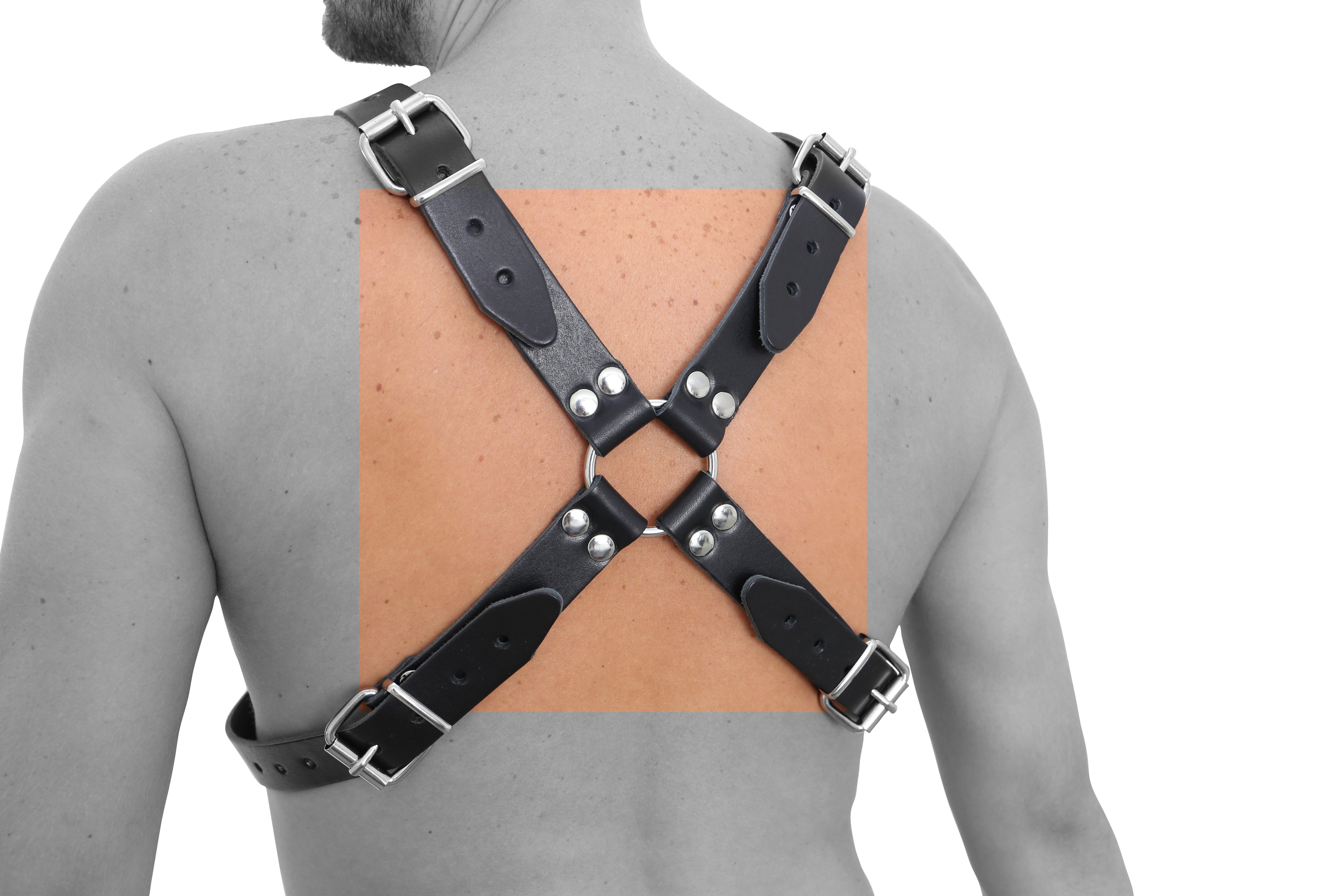 HighQuality - Soft Leder Brust Harness Schwarz/Blau