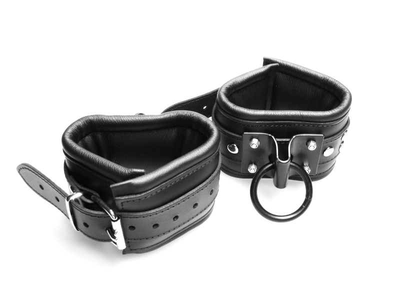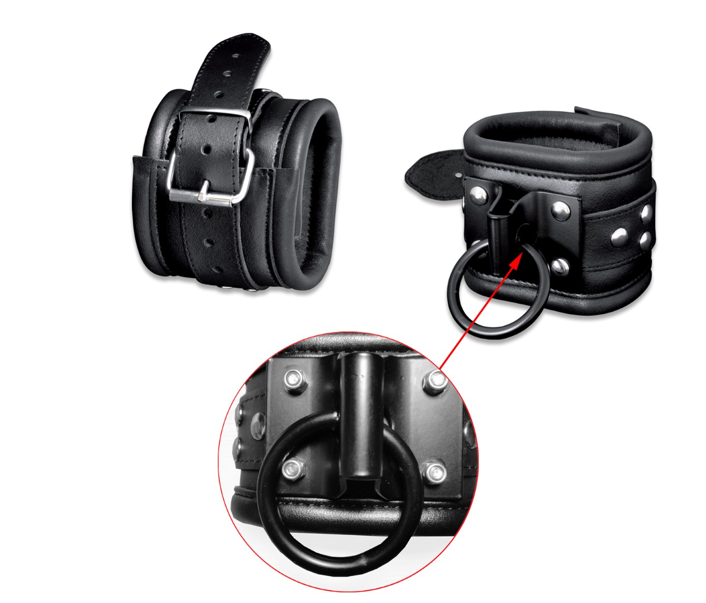 Leder Fesselset schwarz mit großen D-Ringen S-M