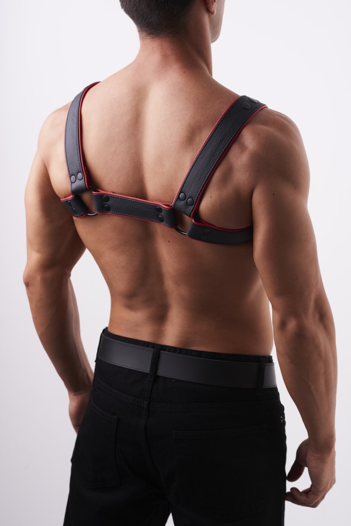 HighQuality - Soft Leder Brust Harness Schwarz/Rot