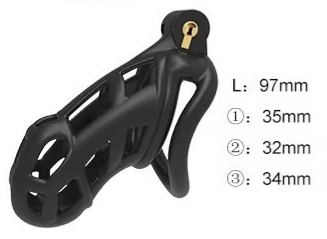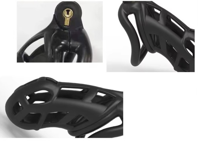 Mit diesem schmucken Peniskäfig wird ein aufmüpfiger Lümmel eingefangen und weggesperrt, so dass er nicht entkommen kann, bis jemand mit Schlüssel ihn wieder freilässt. Durch die Öffnungen links und rechts im Käfig kann der Gefangene nach Lust und Laune mit Krabbeln, Pieksen oder sonstigen kleinen Gemeinheiten in genau der Intensität behandelt werden, die er sich verdient hat.