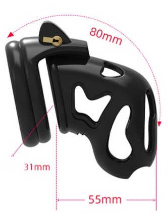 Mit diesem schmucken Peniskäfig wird ein aufmüpfiger Lümmel eingefangen und weggesperrt, so dass er nicht entkommen kann, bis jemand mit Schlüssel ihn wieder freilässt. Durch die Öffnungen links und rechts im Käfig kann der Gefangene nach Lust und Laune mit Krabbeln, Pieksen oder sonstigen kleinen Gemeinheiten in genau der Intensität behandelt werden, die er sich verdient hat.