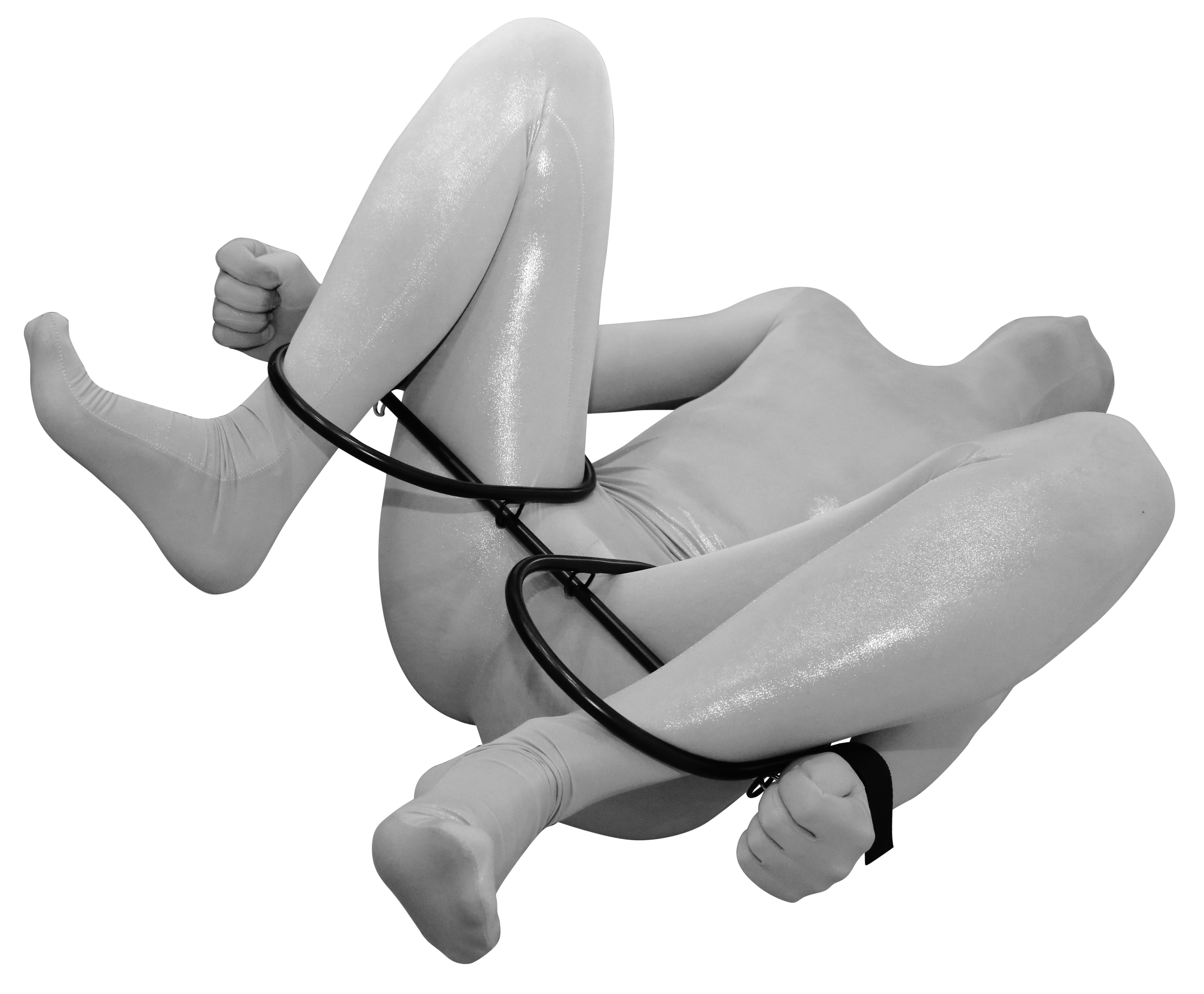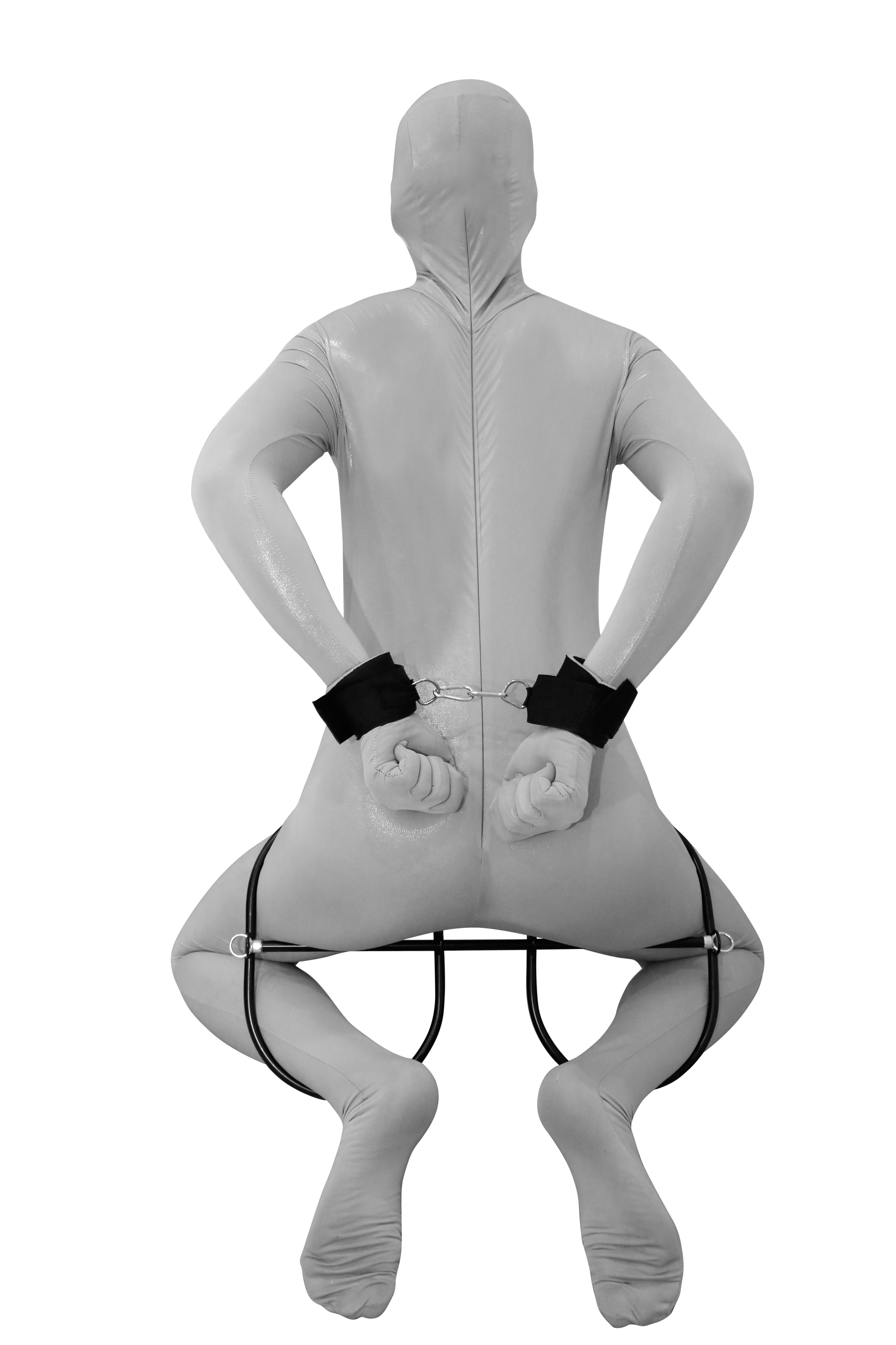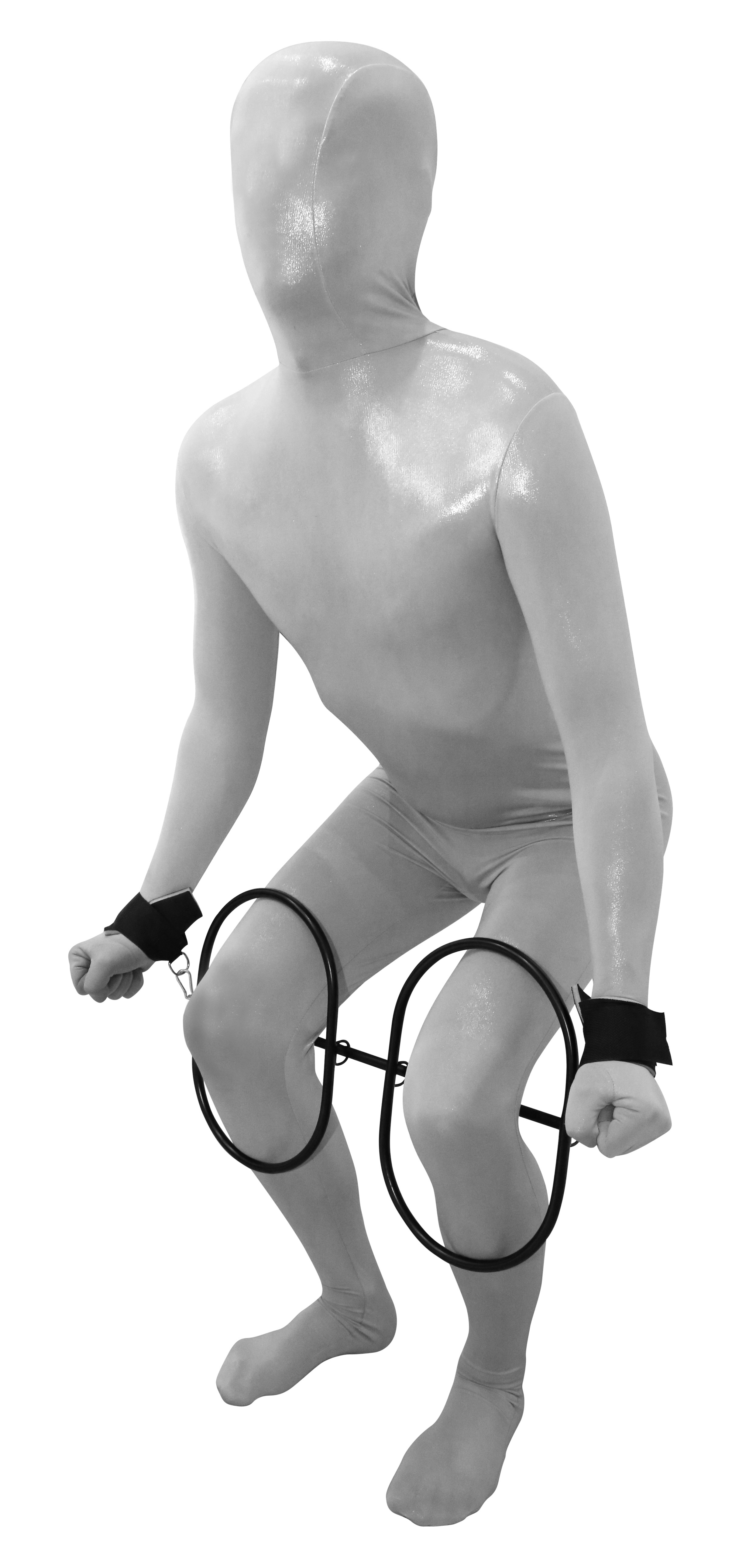 Durch die Querstange (Länge ca. 50 cm) kann die Person so fixiert werden, dass die Bewegungsfreihet und das Strecken der Beine stark eingeschränkt ist.