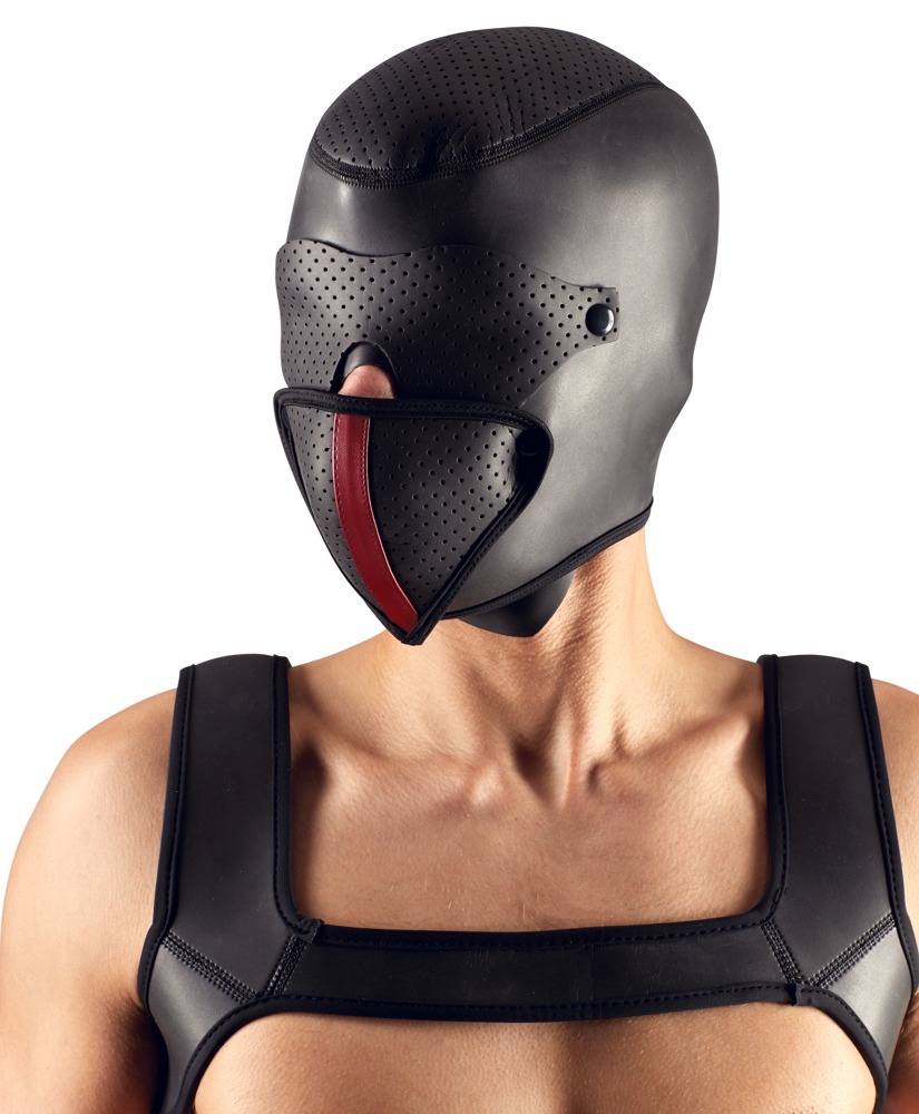 Mit dieser Maske ist eine aufregende Abschottung der Sinne gesichert! Sie sitzt hauteng und mit den perforierten Einsätzen für Mund und Nase ist ein kompletter Raub der Sinne möglich.