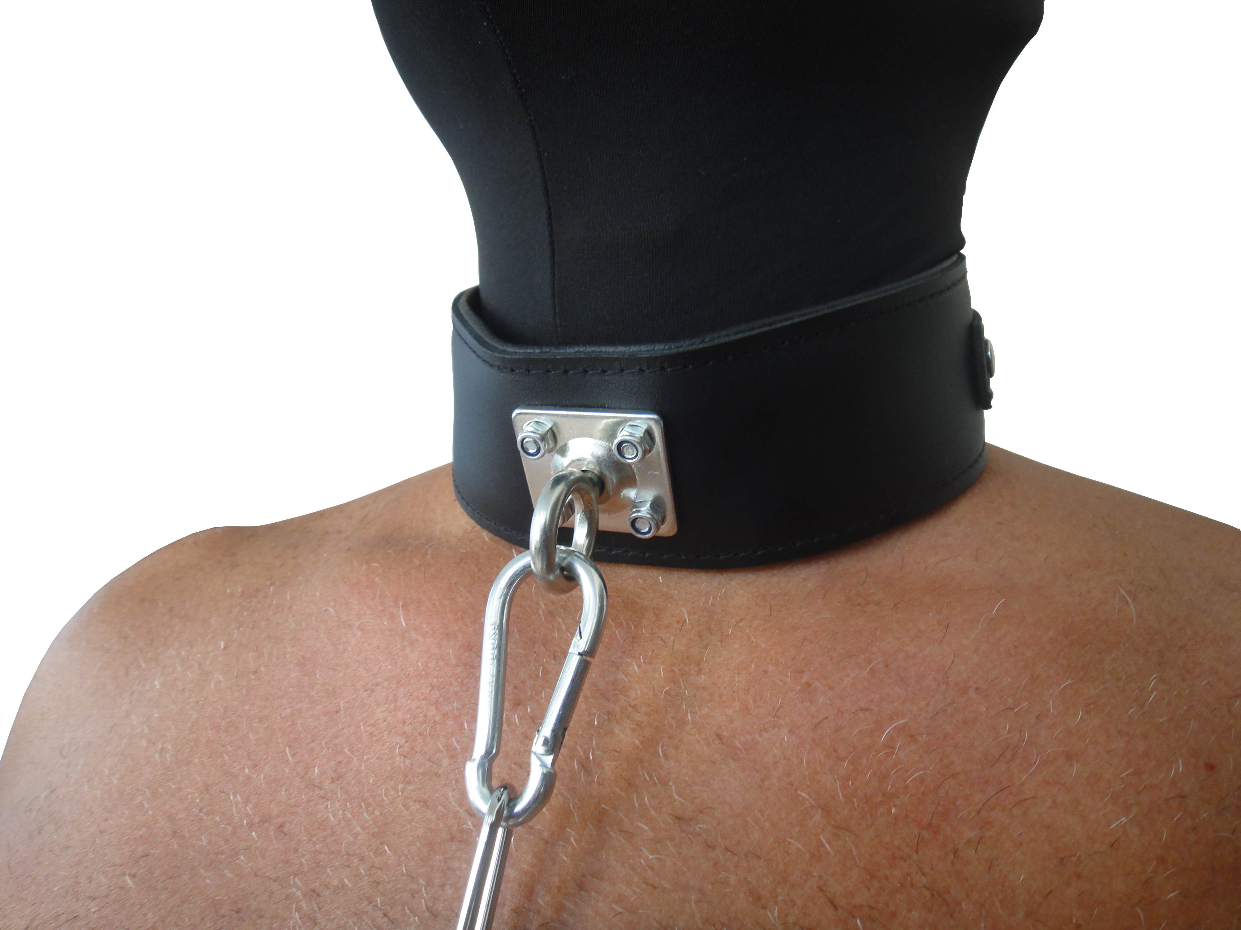 Leder Fesselset mit drehbaren Edelstahlringen Schwarz mit dicker Kette und Karabinern