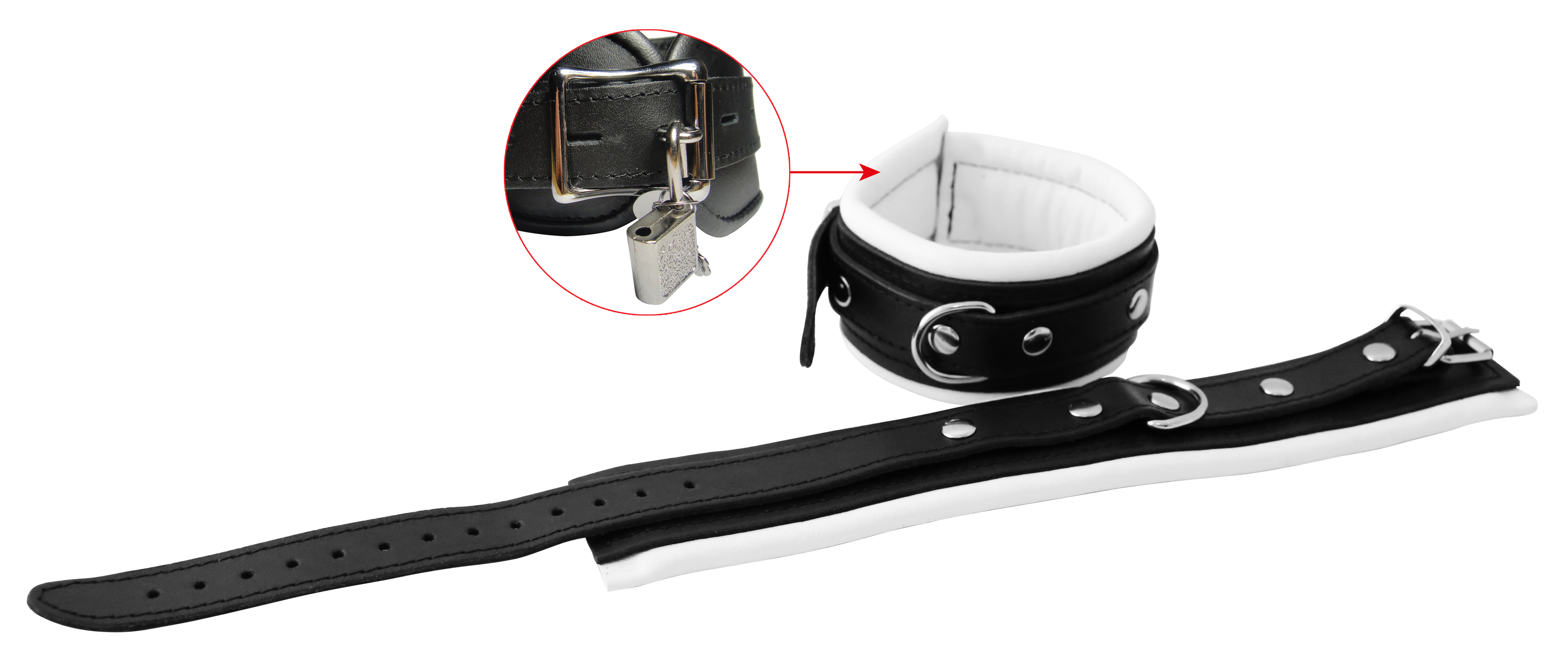Leder Fußfessel weiß ca. 5 cm breit gepolstert abschließbar.