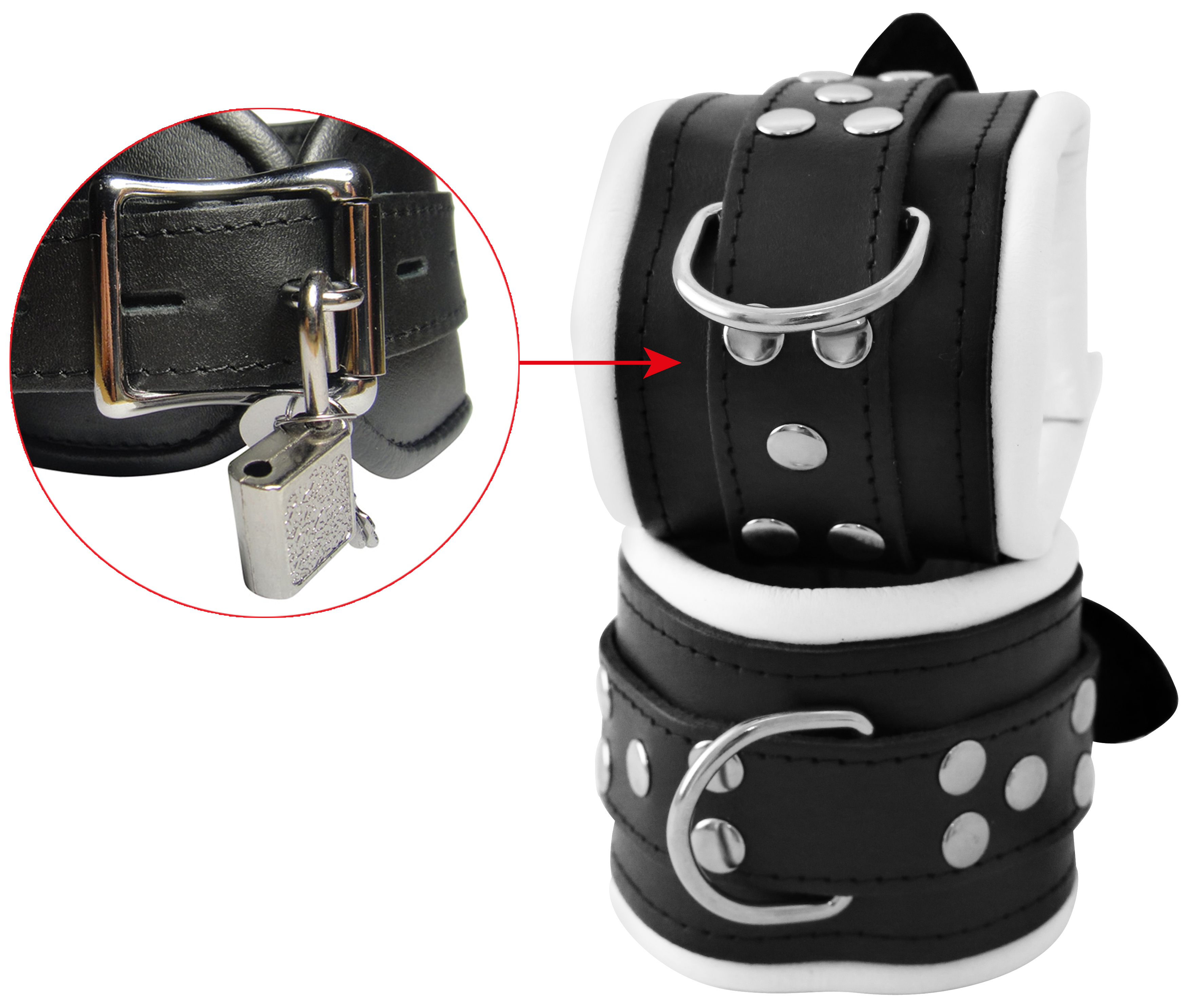 Leder Handfessel weiß ca. 8 cm breit gepolstert abschließbar.