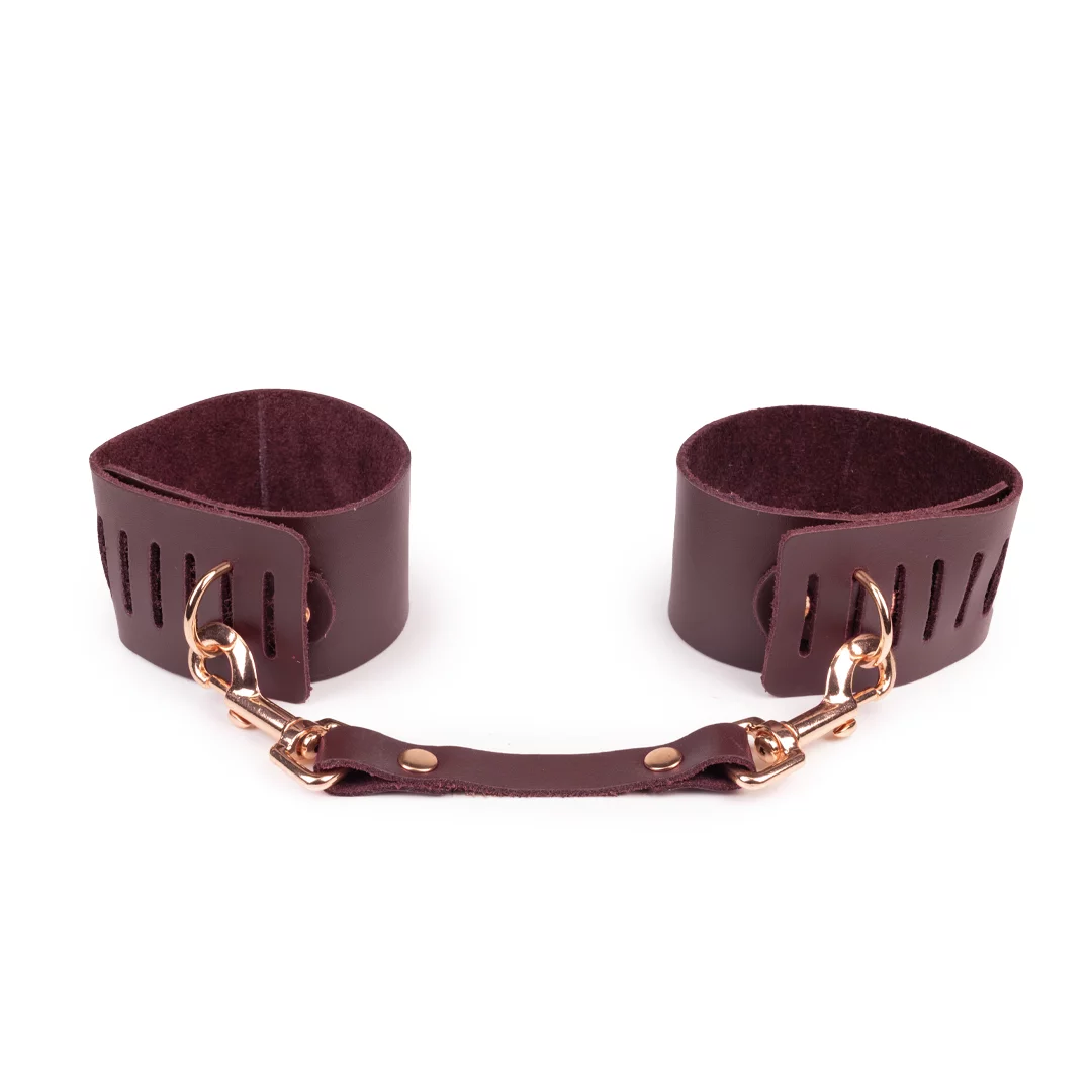 Tipp: Ergänze die Fußfesseln mit den passenden Handfesseln und dem Halsband in Burgunder & Roségold – für ein komplettes, luxuriöses Set.