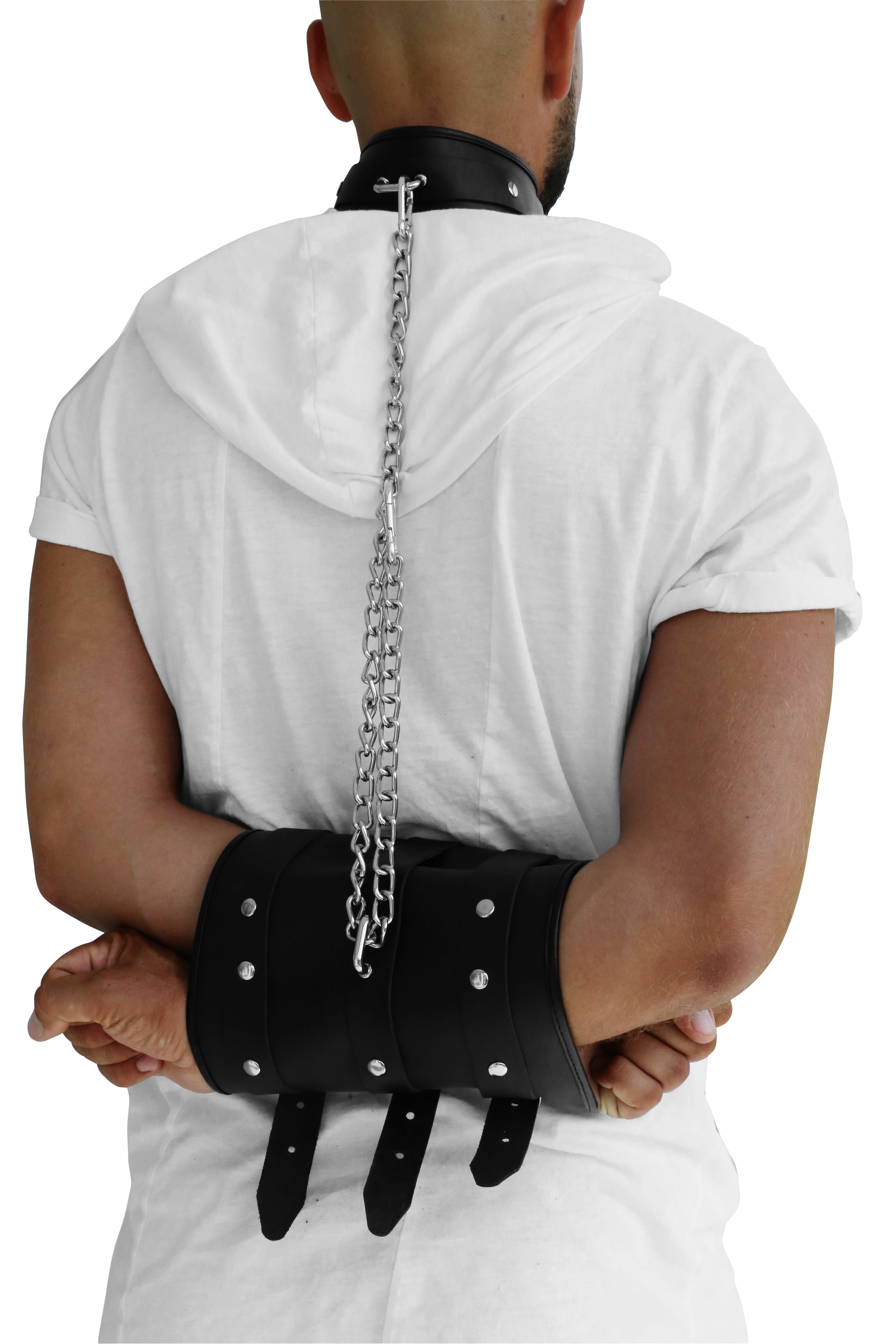 LEDER FESSELNDES - Abschließbare Handfesseln aus Edelstahl Leder