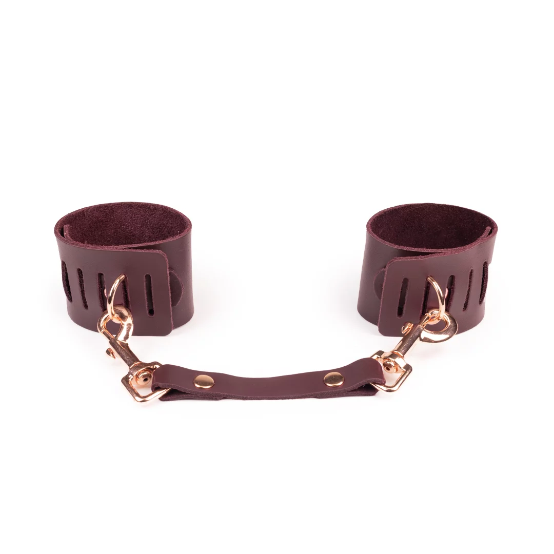 Produktinformationen "Lederhandfesseln Burgundy / Roségold"