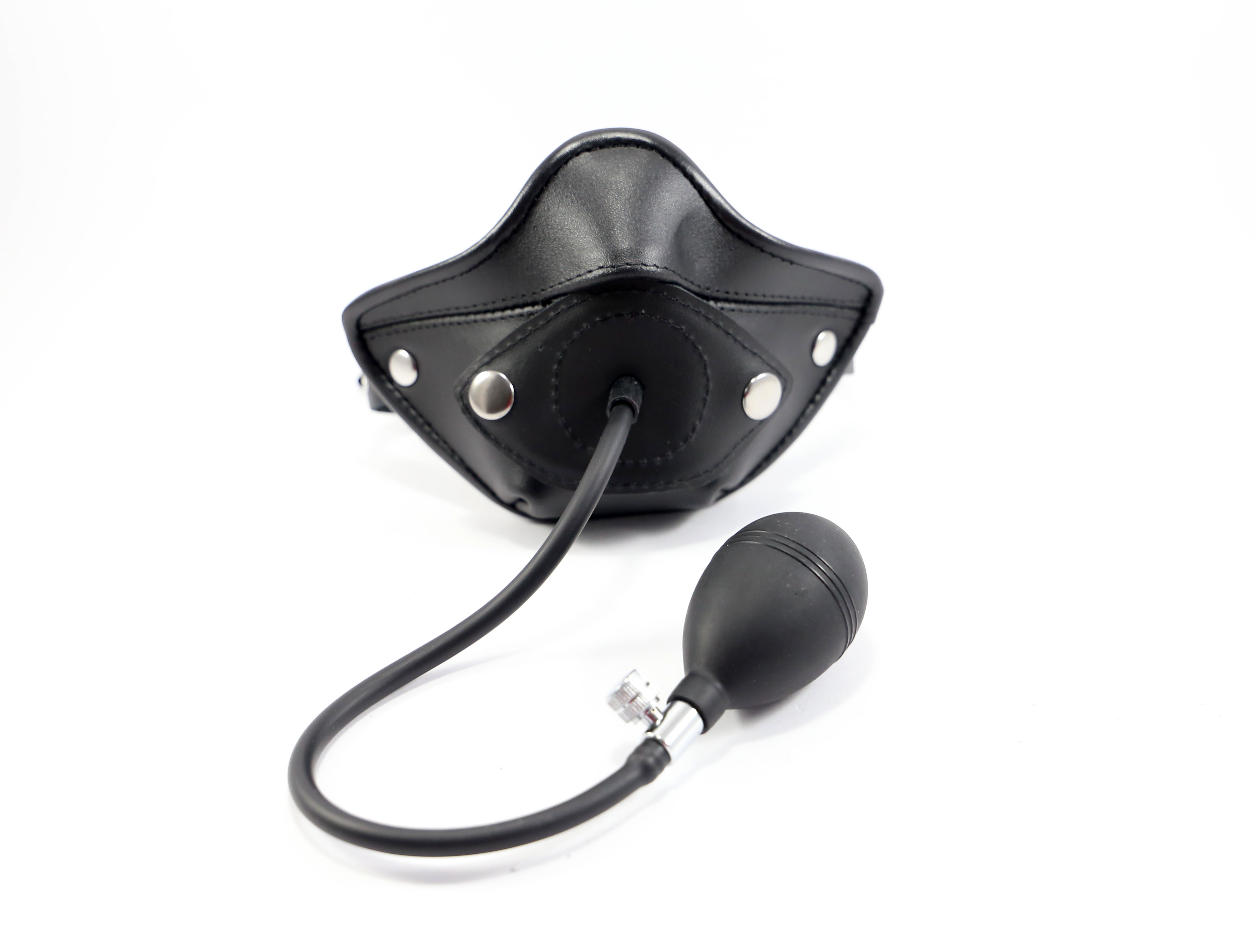 Maske aus Leder mit abnehmbarem Pump Knebel (aus Latex ca. 6 cm lang / Ø 3 cm bis 7 cm)
