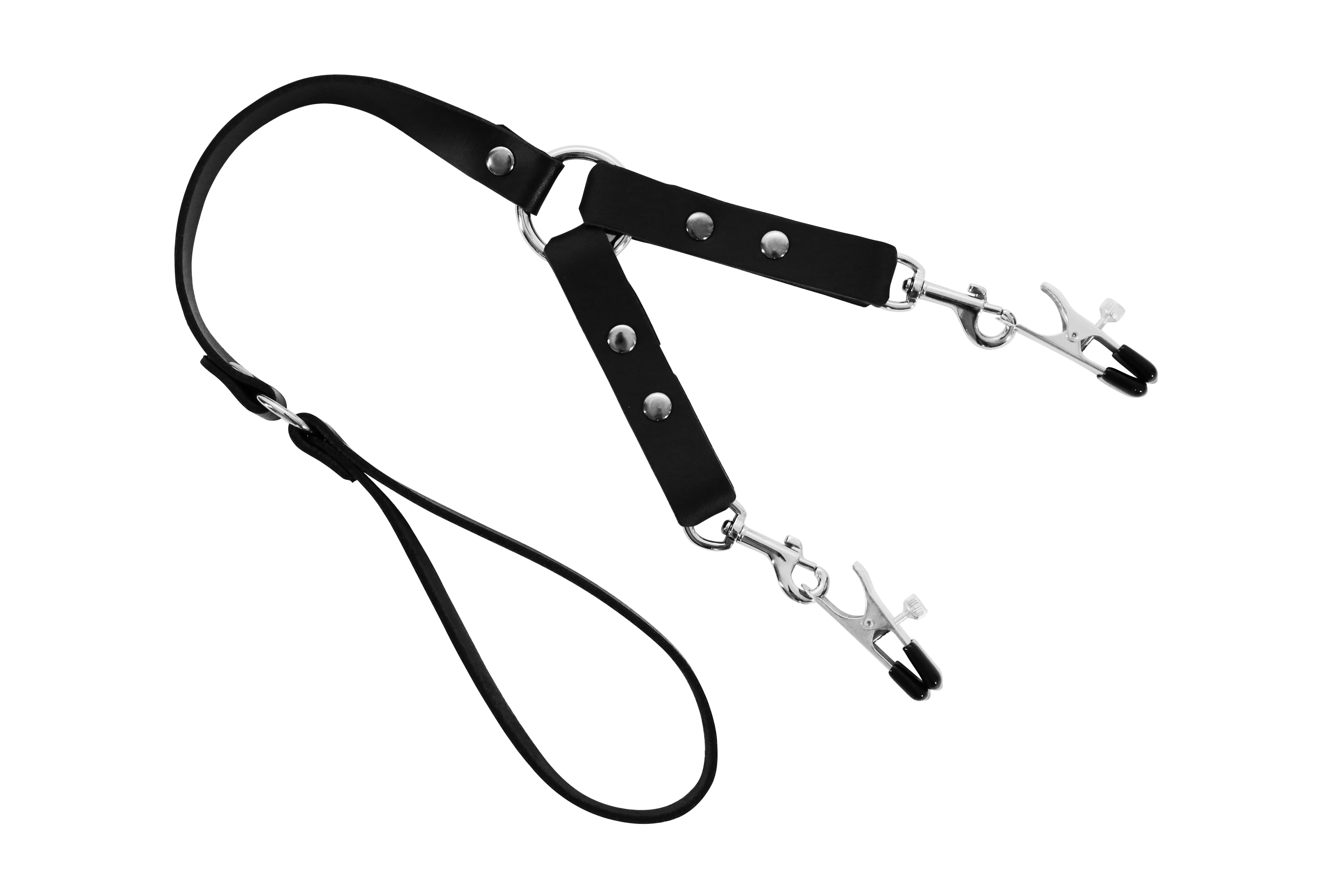 Doppelnippelklammern mit Kette und Ledergriff