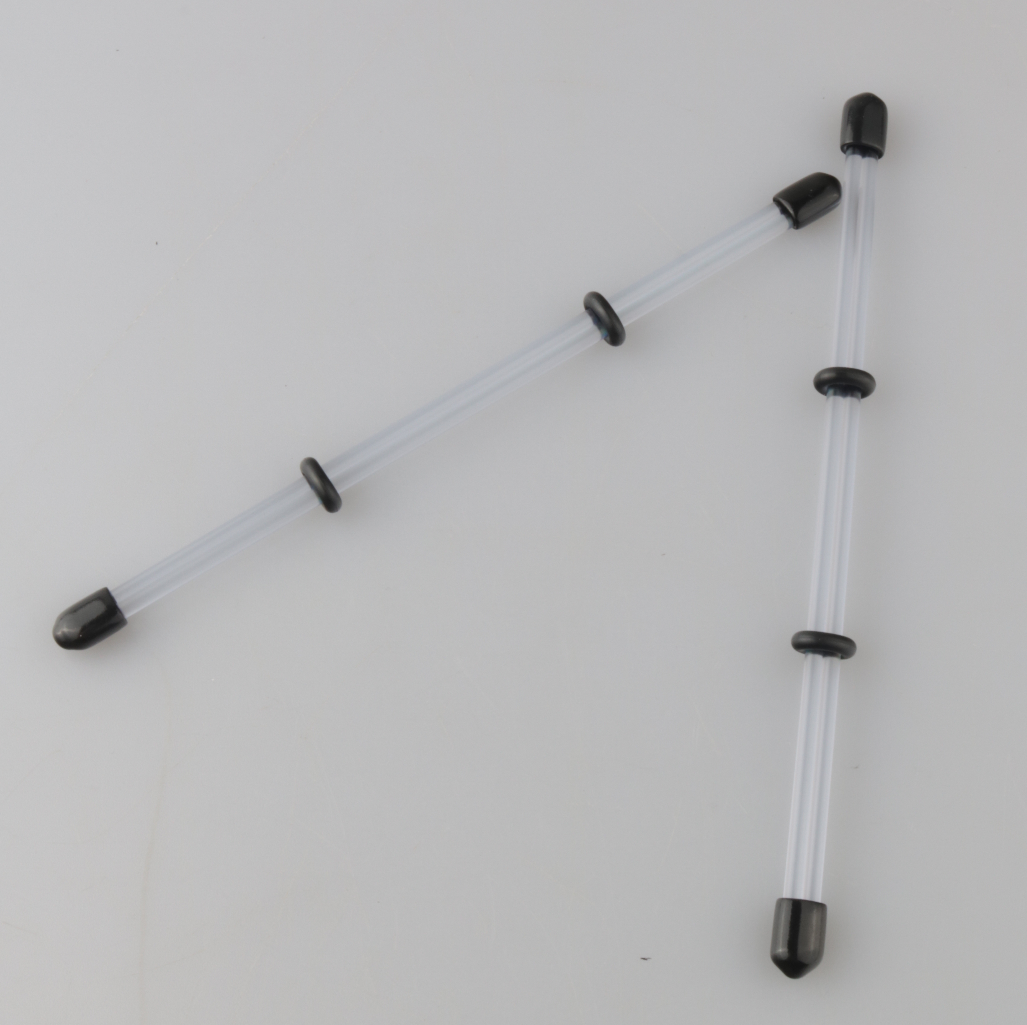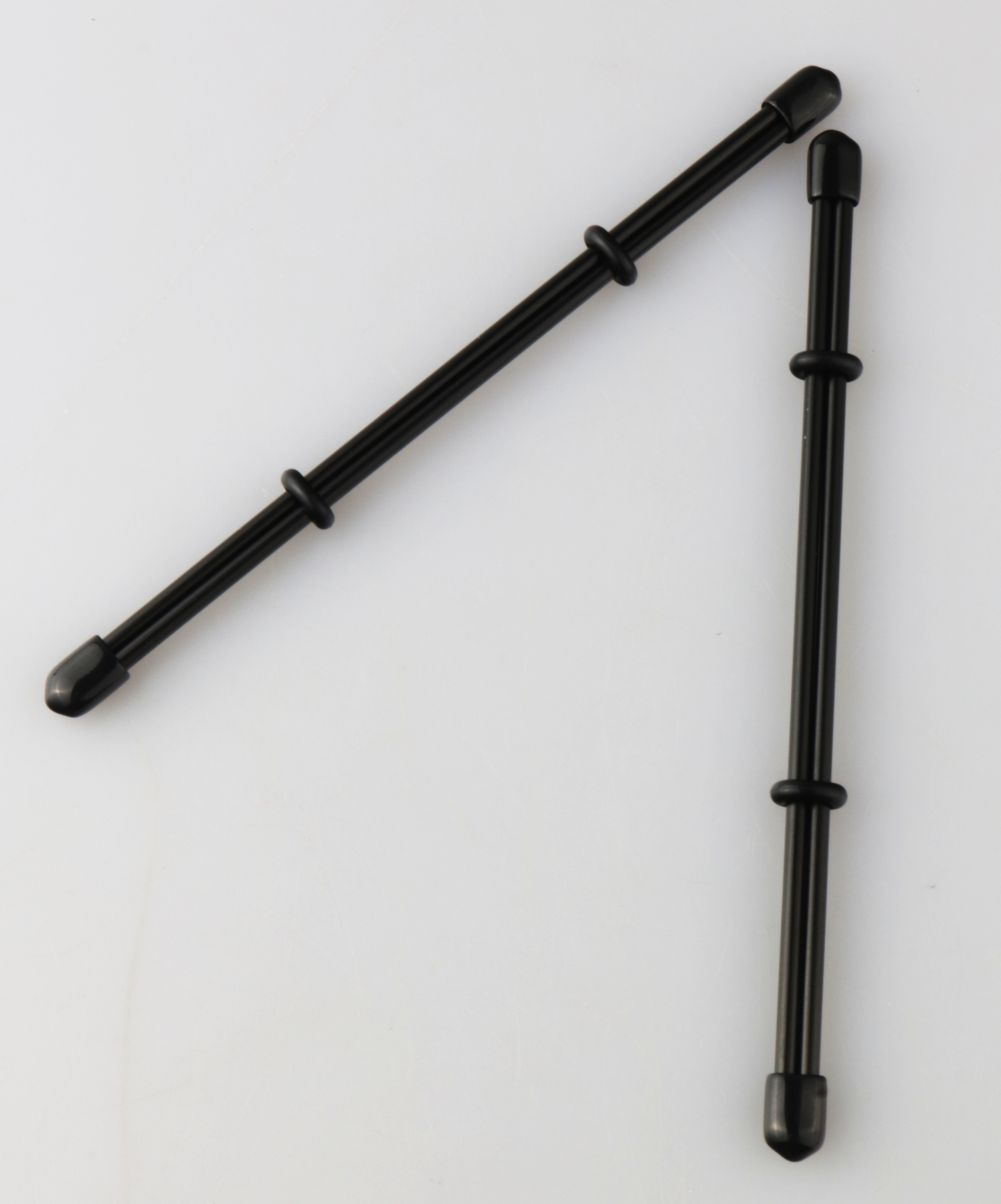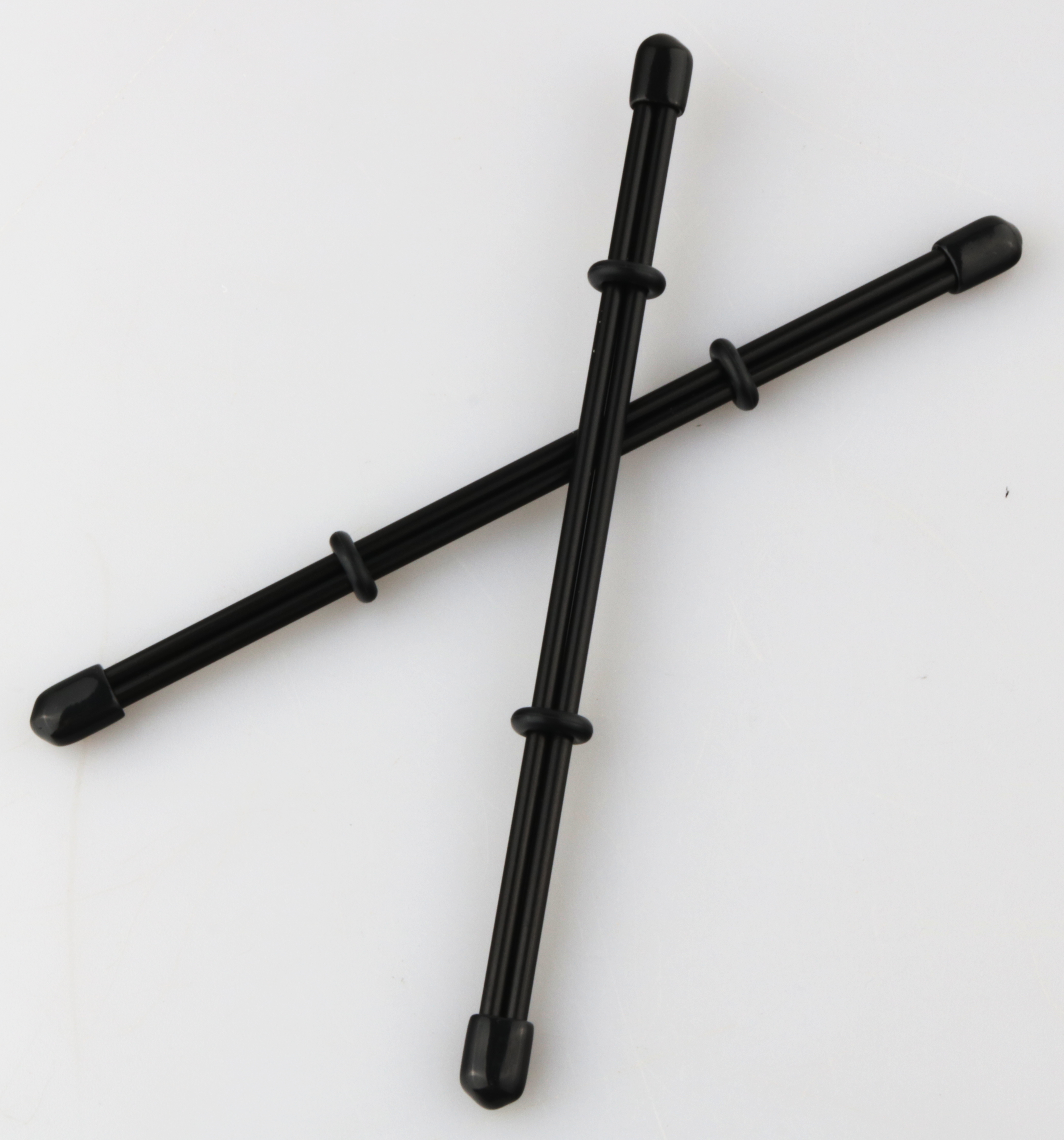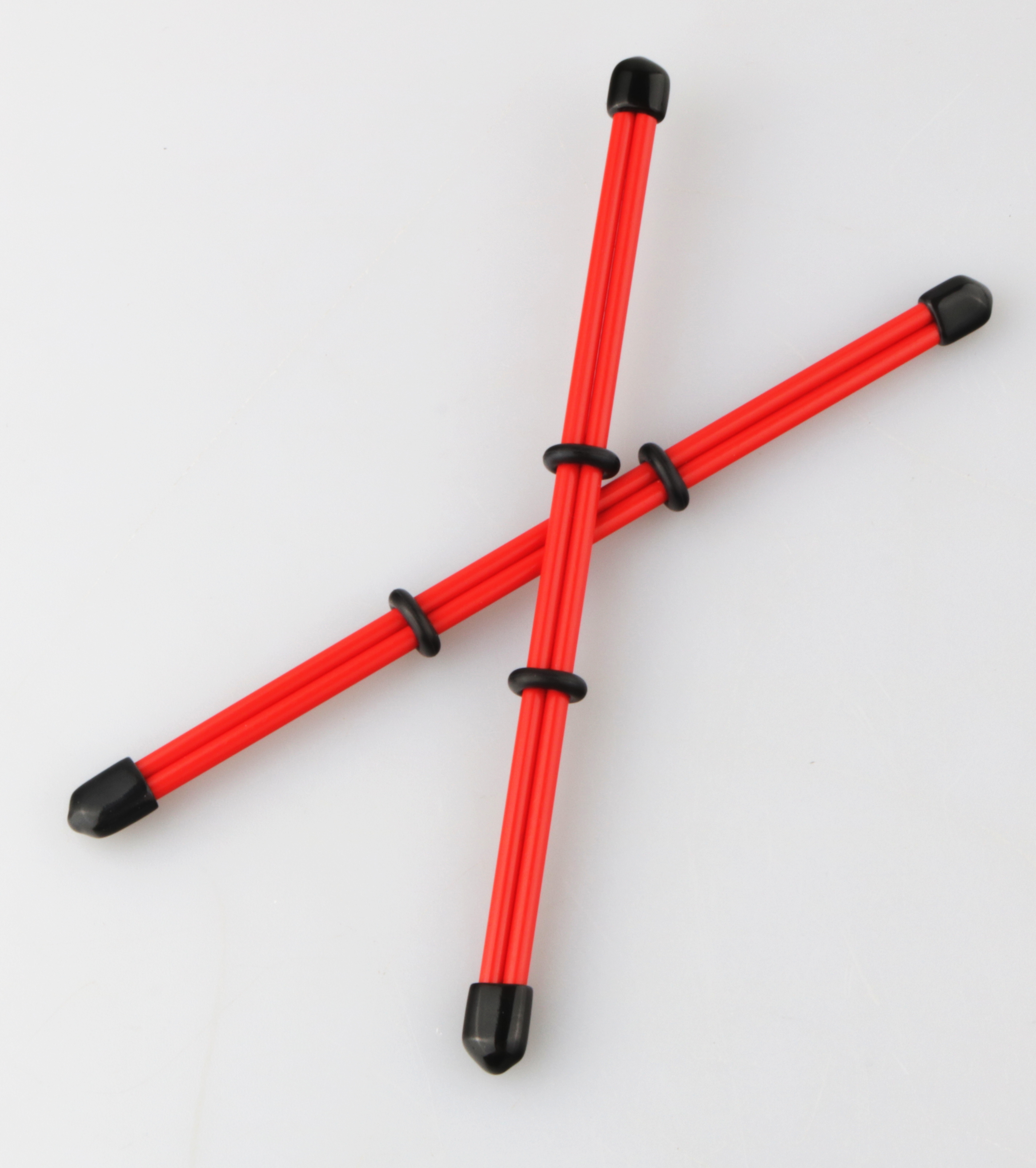 Mit Gummiendkappen und Gummiringen,