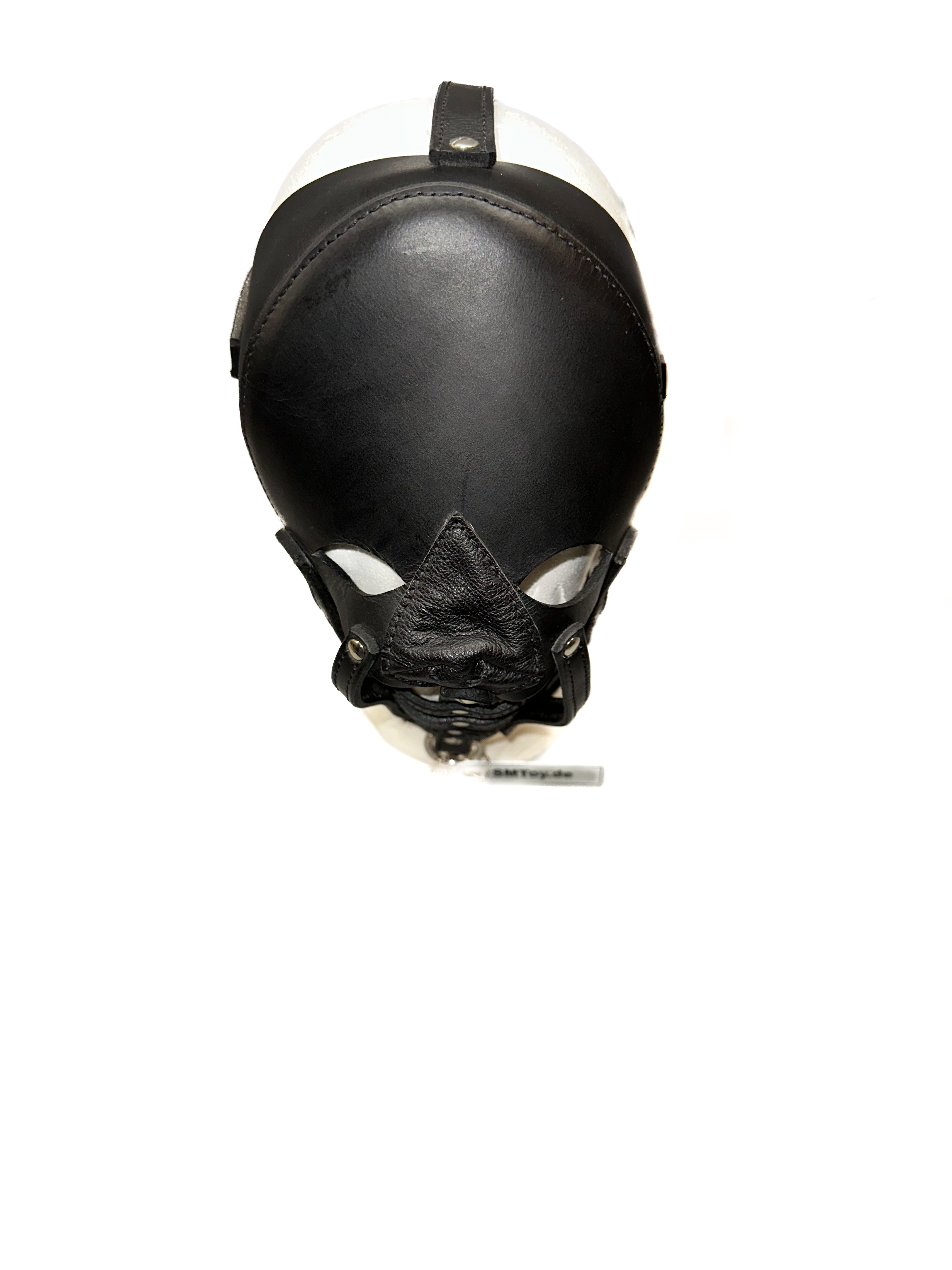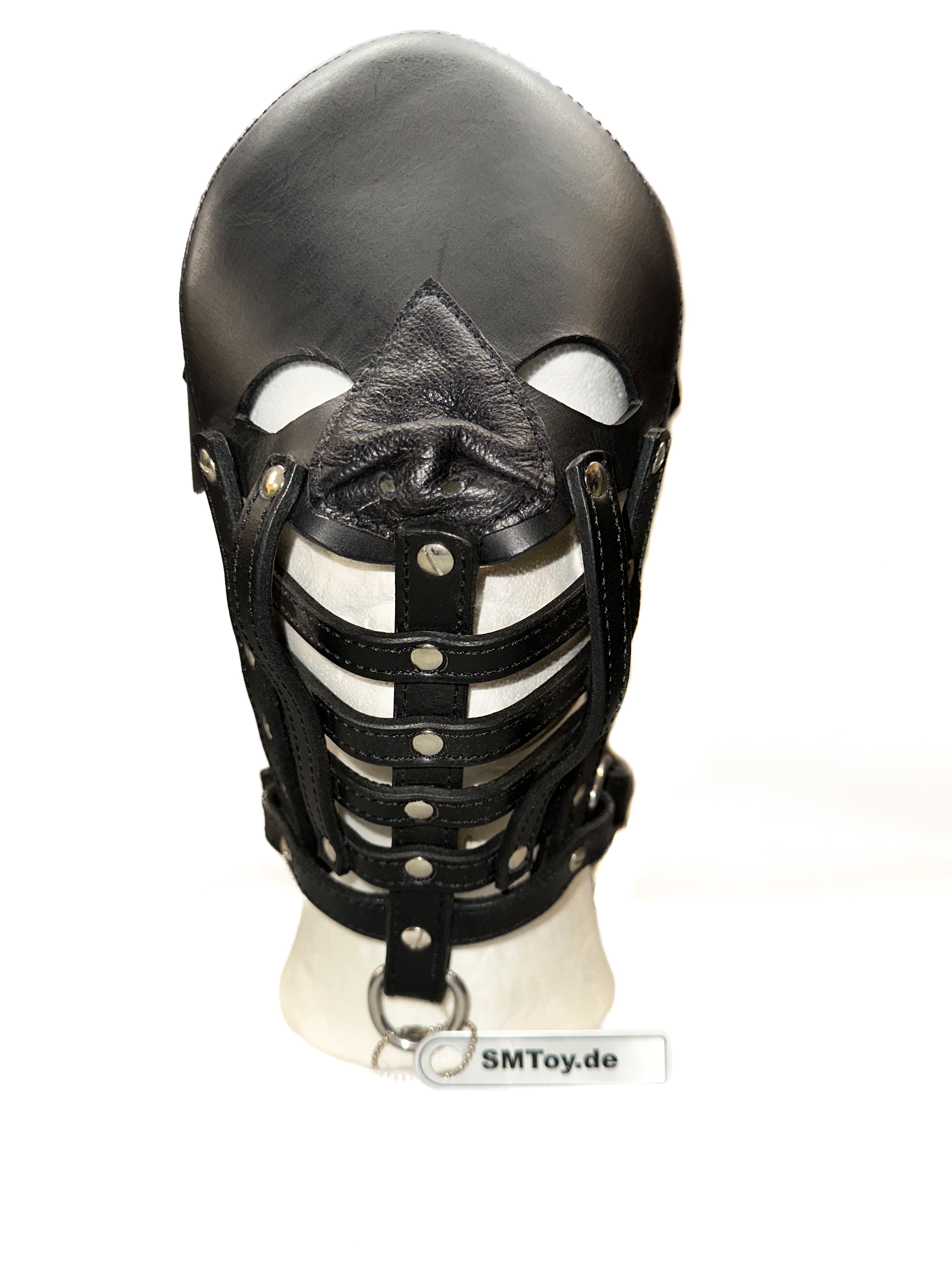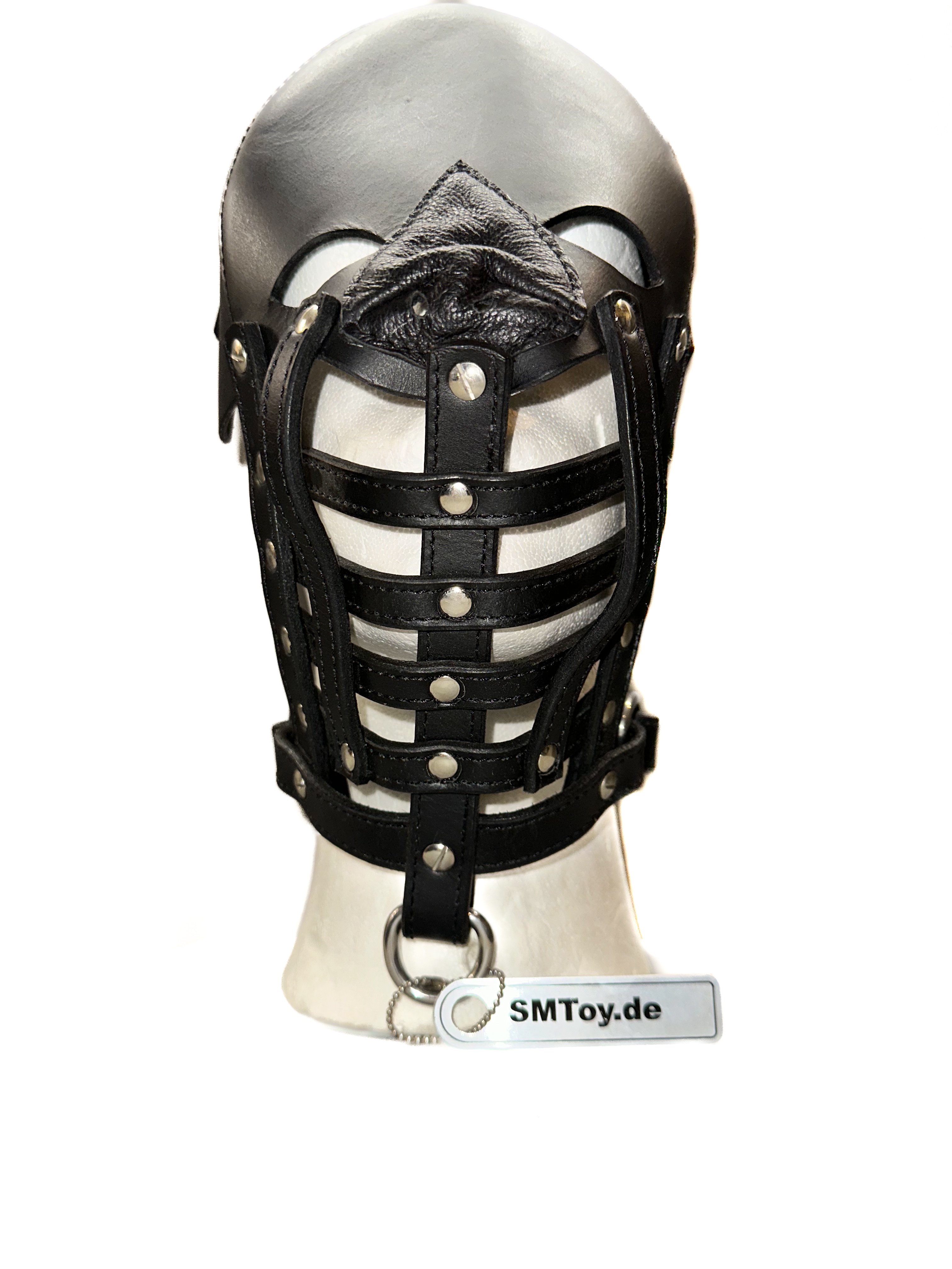 Diese Maske aus sehr festem Leder ist wirklich eine garstige Strafe.