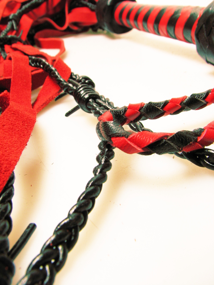 Subbie's letztes Erlebnis - Stacheldrahtpeitsche aus Leder rot-schwarz
